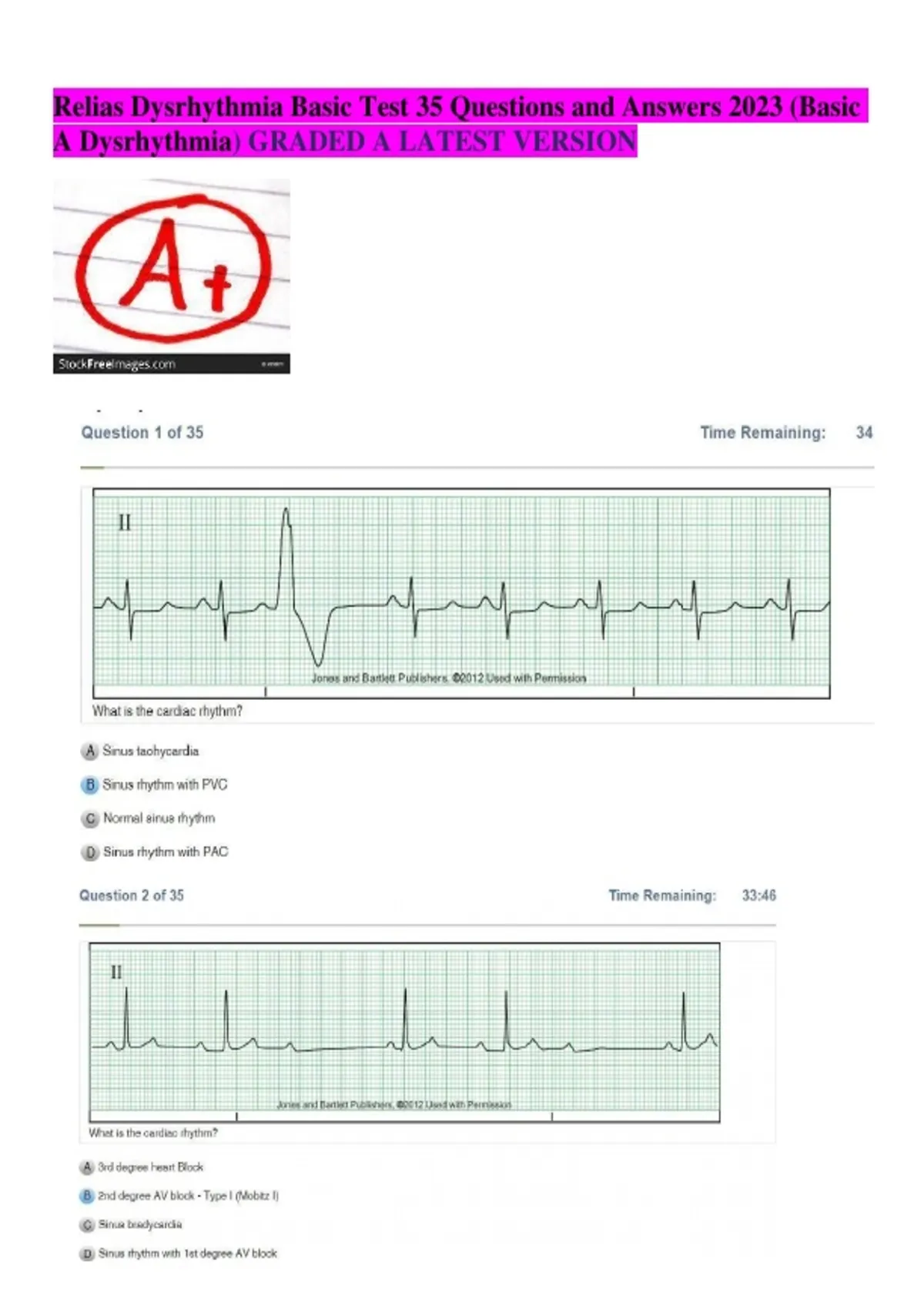 Relias Dysrhythmia Basic Test 35 Questions and Answers 2023 (Basic A Dysrhythmia) GRADED A LATEST VERSION