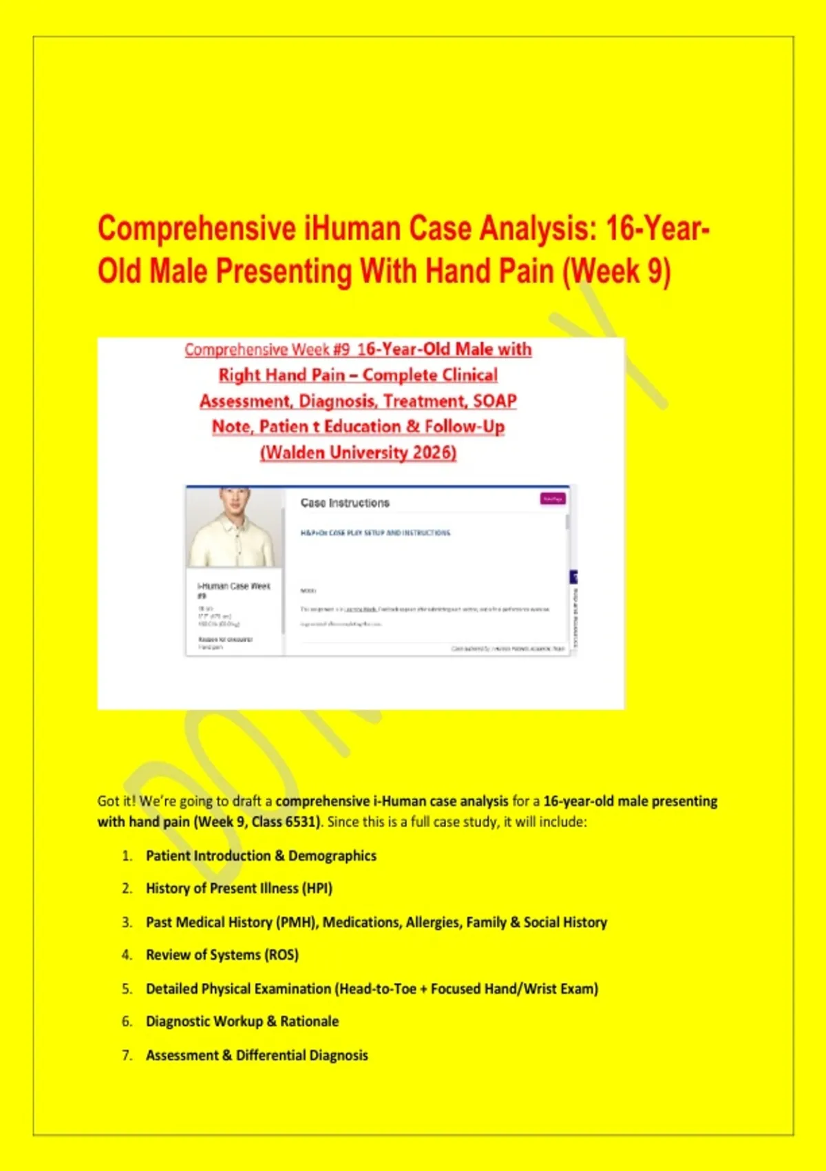 with hand pain (Week 9, Class 6531). Since this is a full case study, it will include: