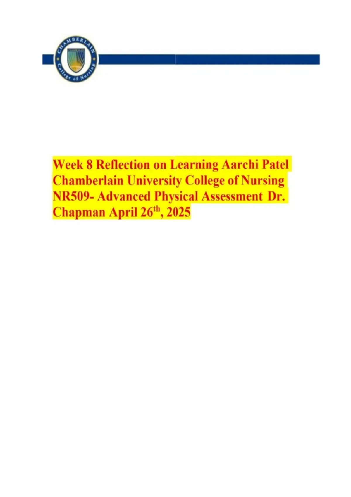 Week 8 Reflection on Learning Aarchi Patel Chamberlain University College of Nursing NR509- Advanced Physical Assessment Dr. Chapman April 26th, 2025.pdf