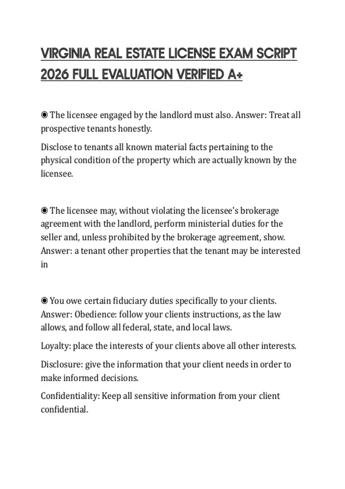 ◉ The licensee engaged by the landlord must also. Answer: Treat all