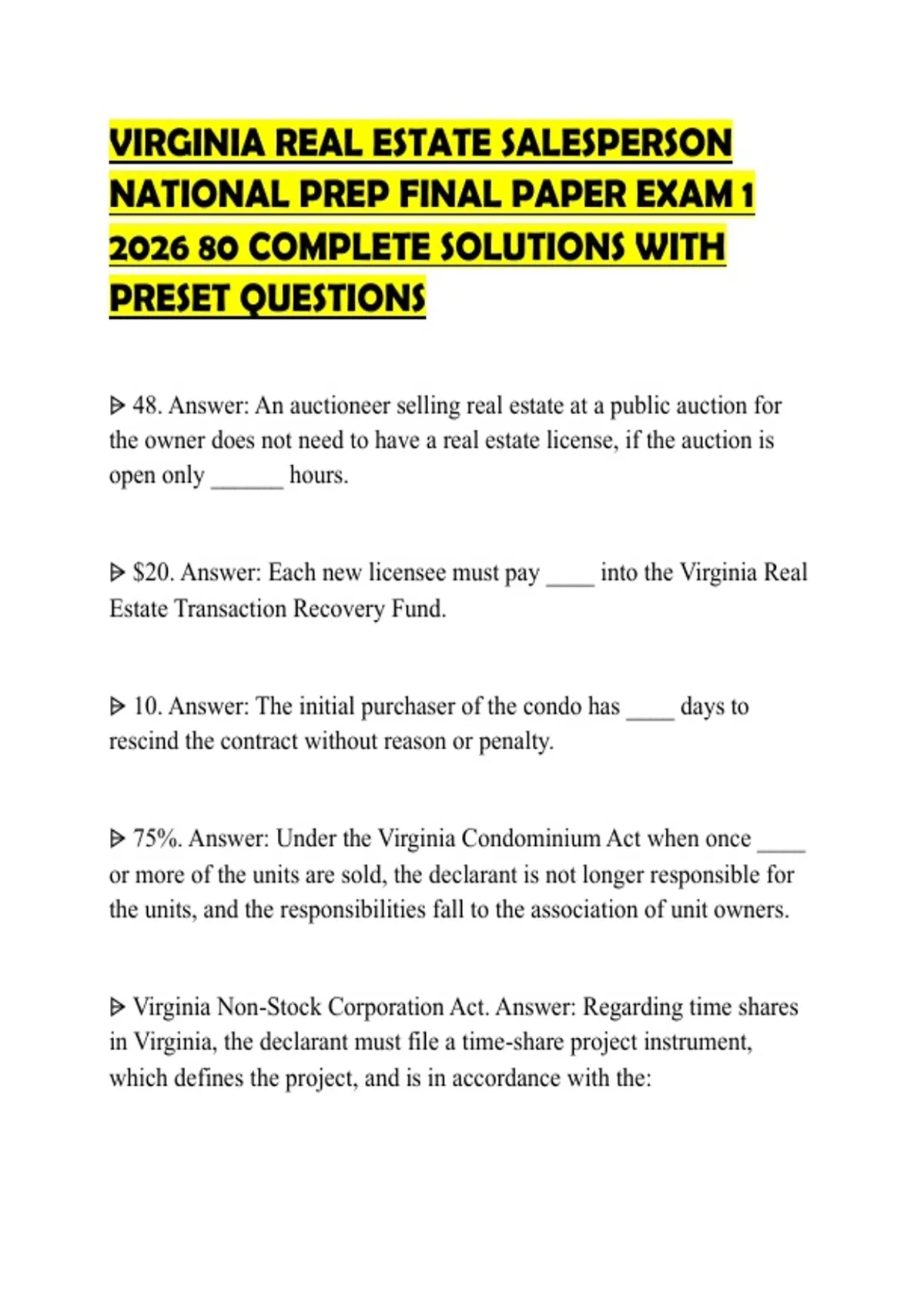 ⩥ 75%. Answer: Under the Virginia Condominium Act when once ____