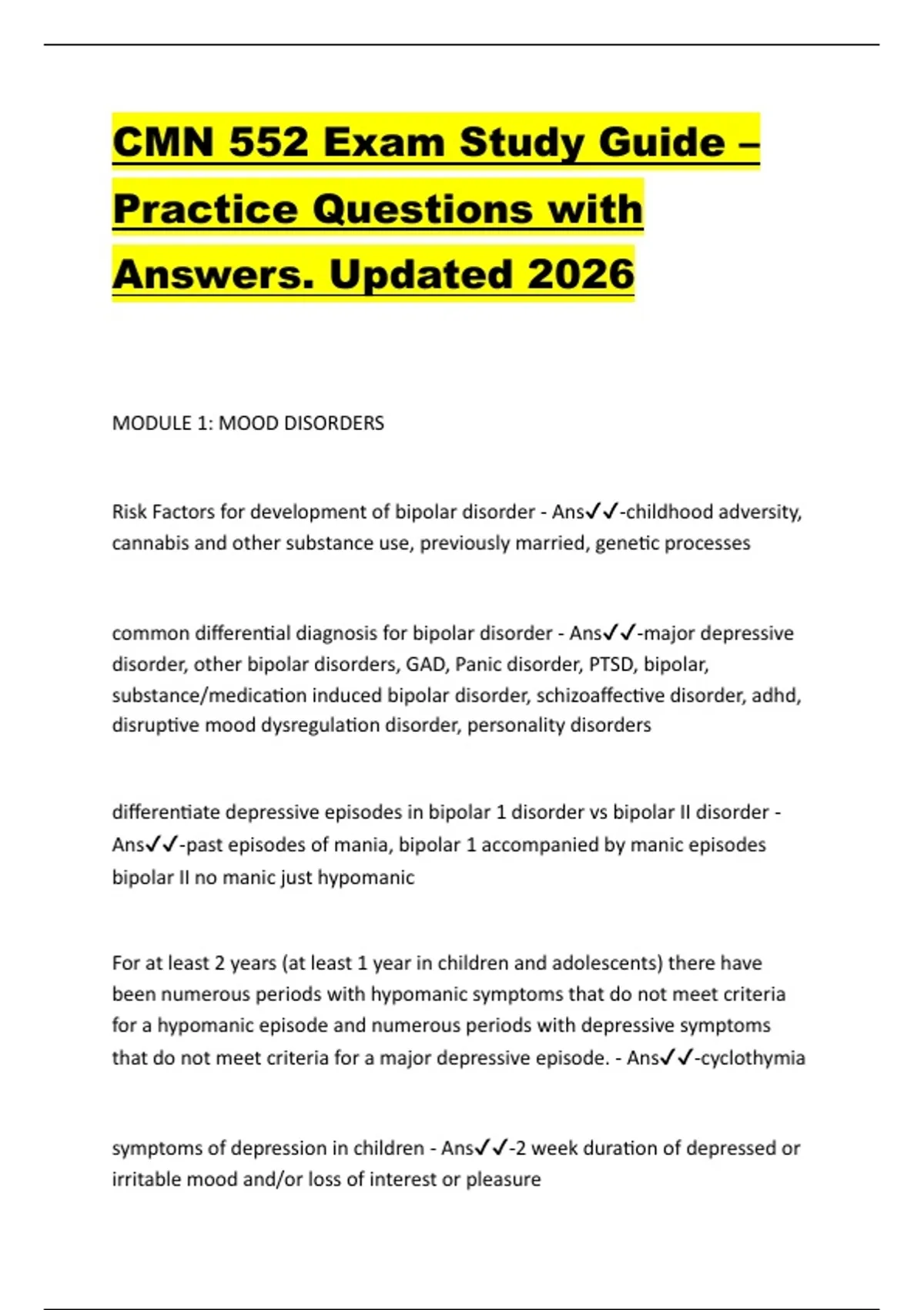 Risk Factors for development of bipolar disorder - Ans✔✔-childhood adversity,