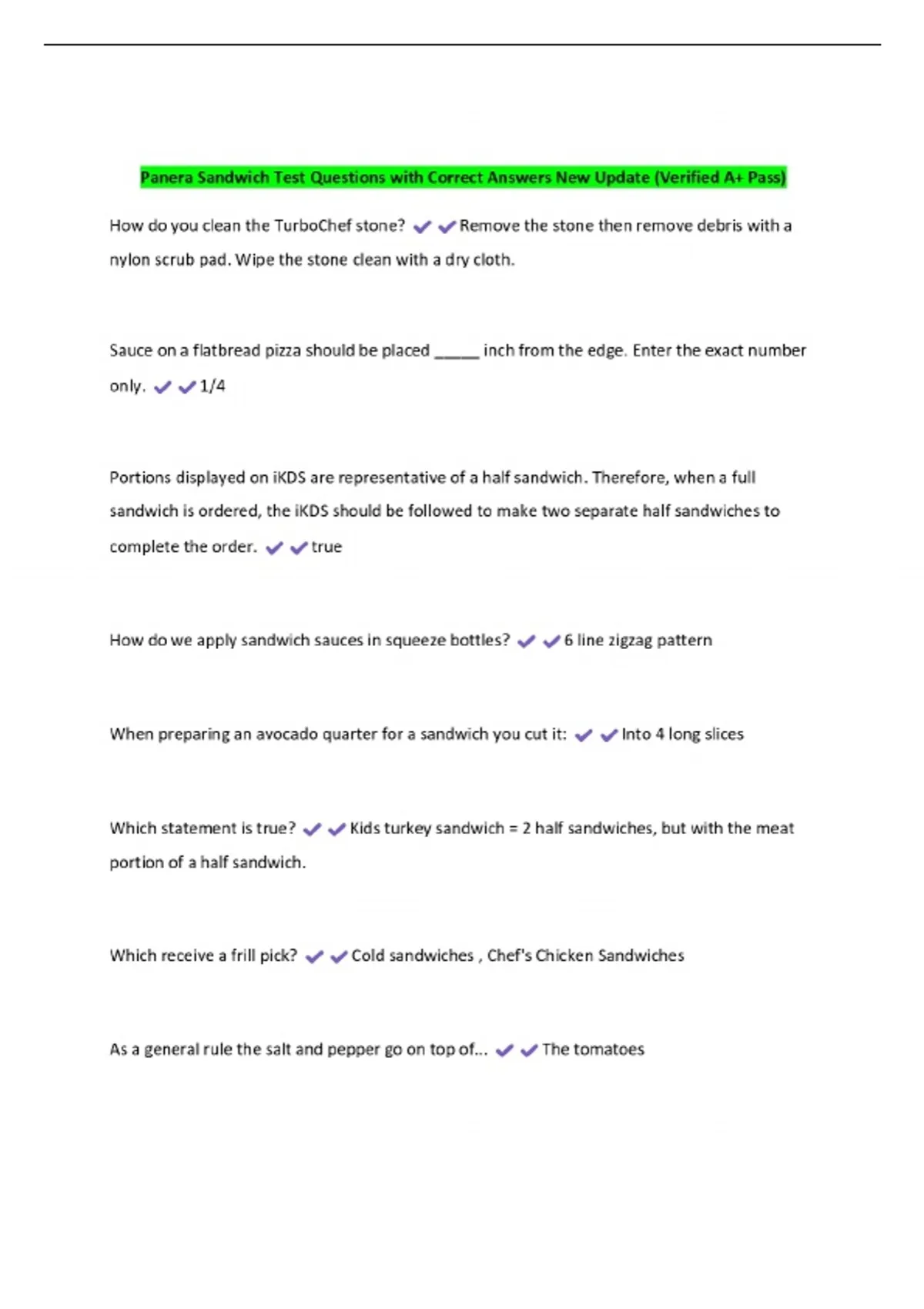 Panera Sandwich Test Questions with Correct Answers New Update (Verified A+ Pass)