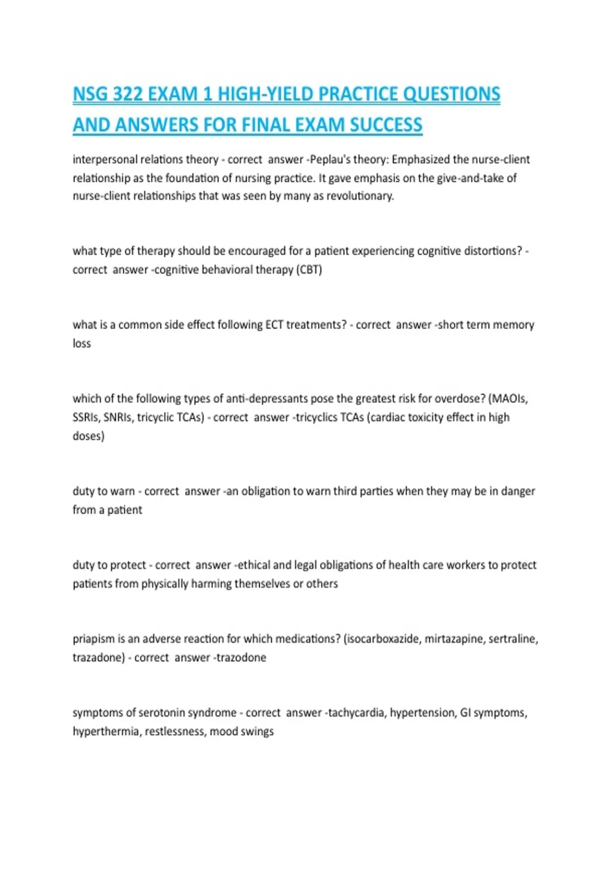 NSG 322 EXAM 1 HIGH-YIELD PRACTICE QUESTIONS