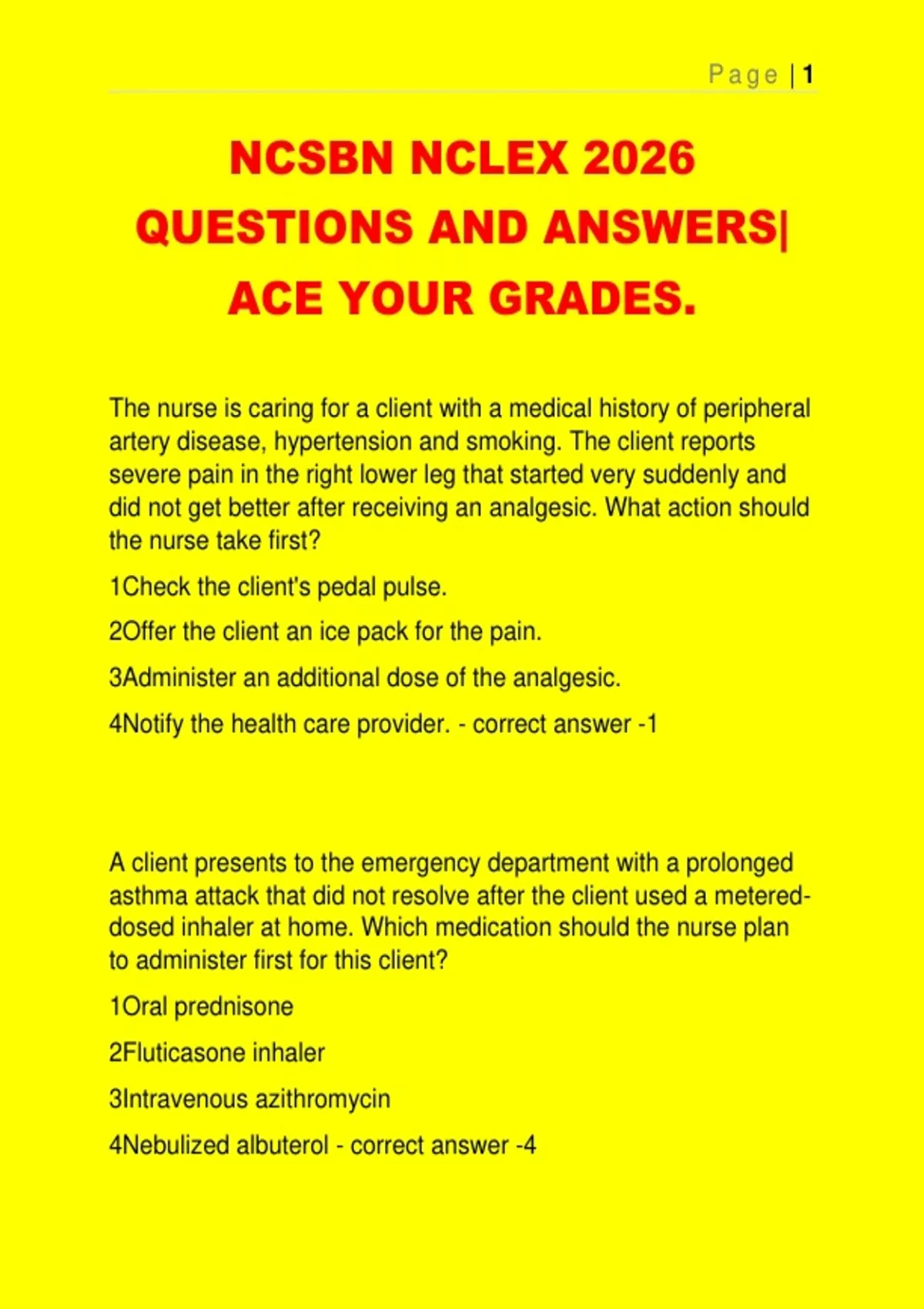 NCSBN NCLEX 2026 QUESTIONS AND ANSWERS| ACE YOUR GRADES.