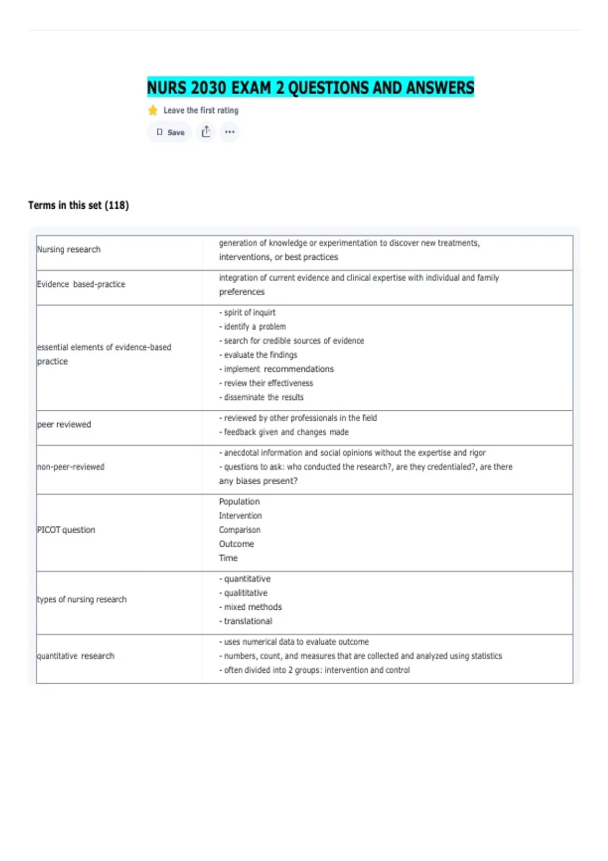 NURS 2030 EXAM 2 QUESTIONS AND ANSWERS
