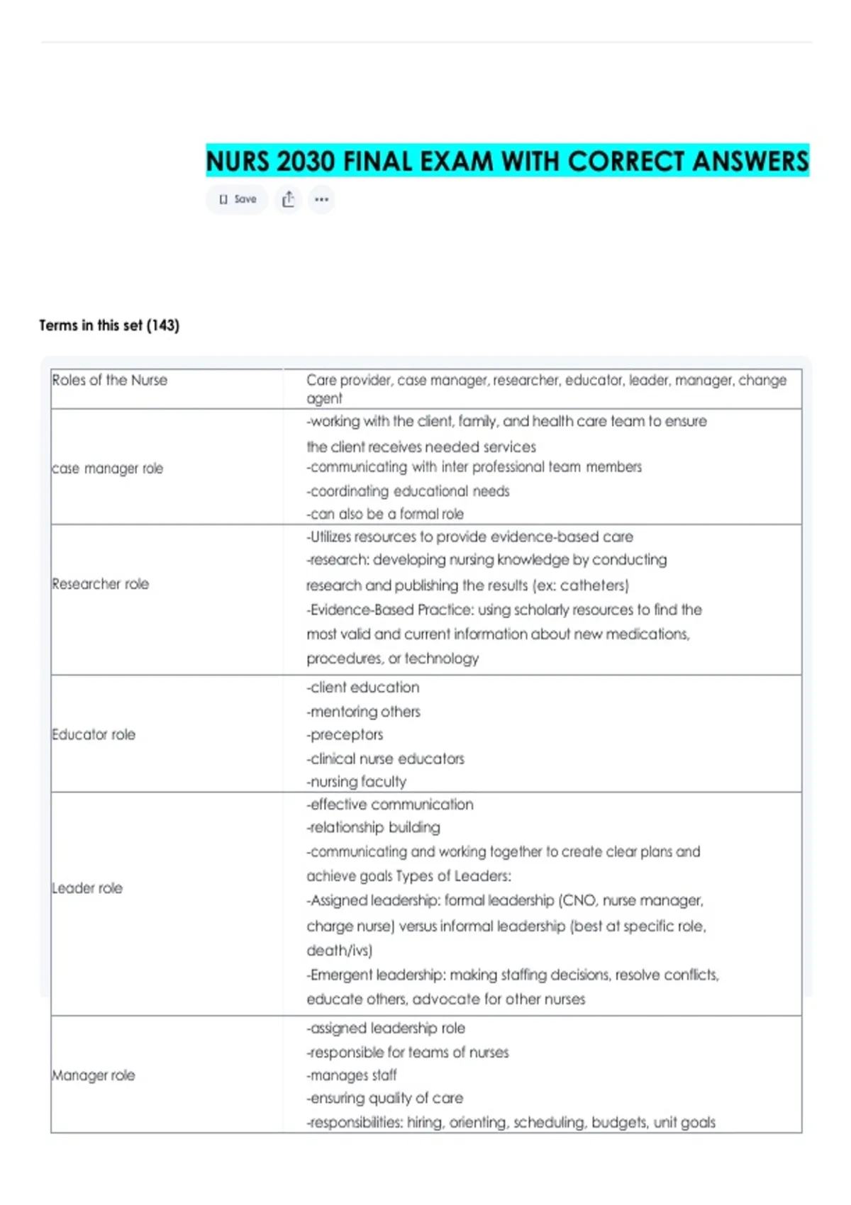 NURS 2030 FINAL EXAM WITH CORRECT ANSWERS