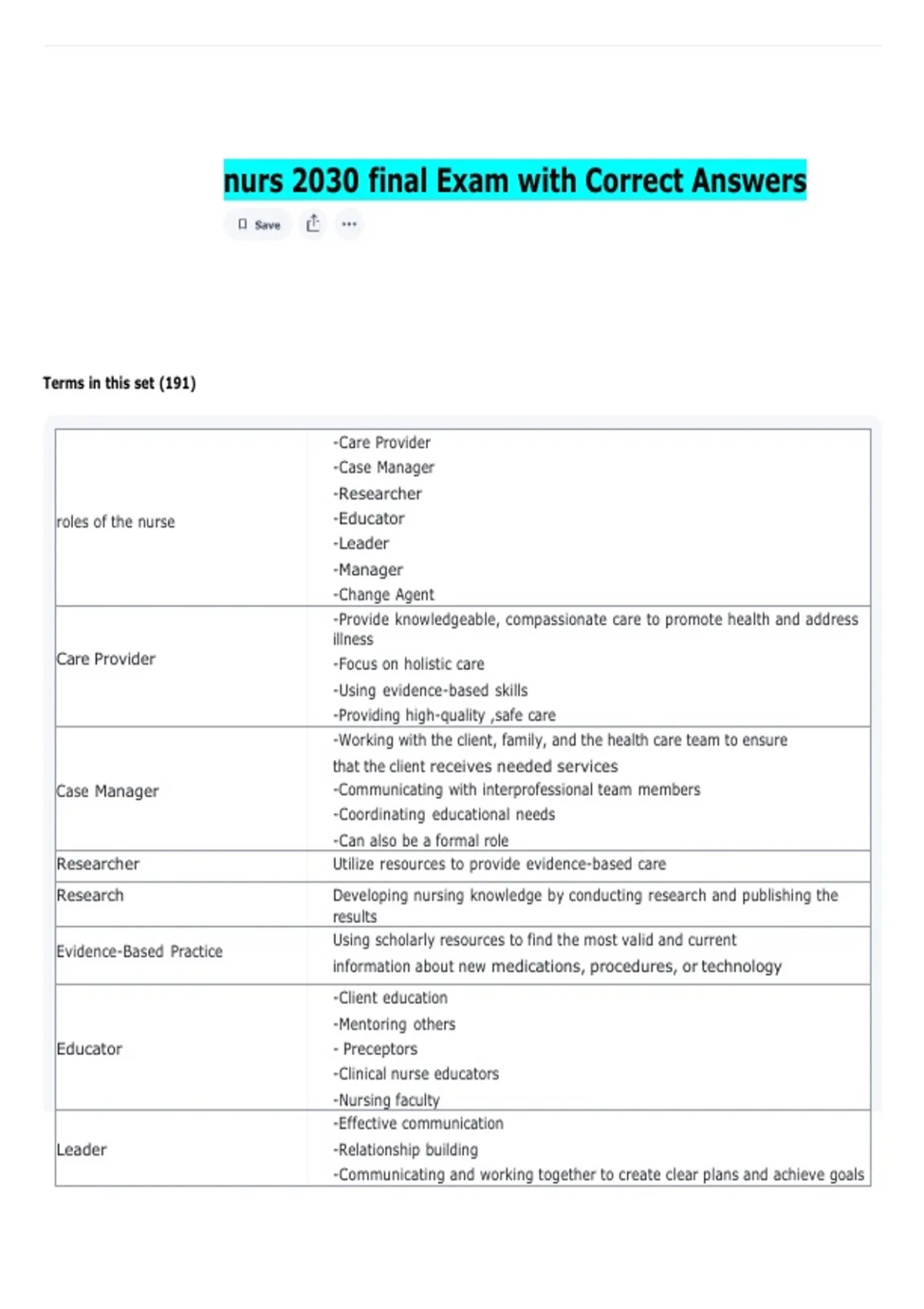 nurs 2030 final Exam with Correct Answers
