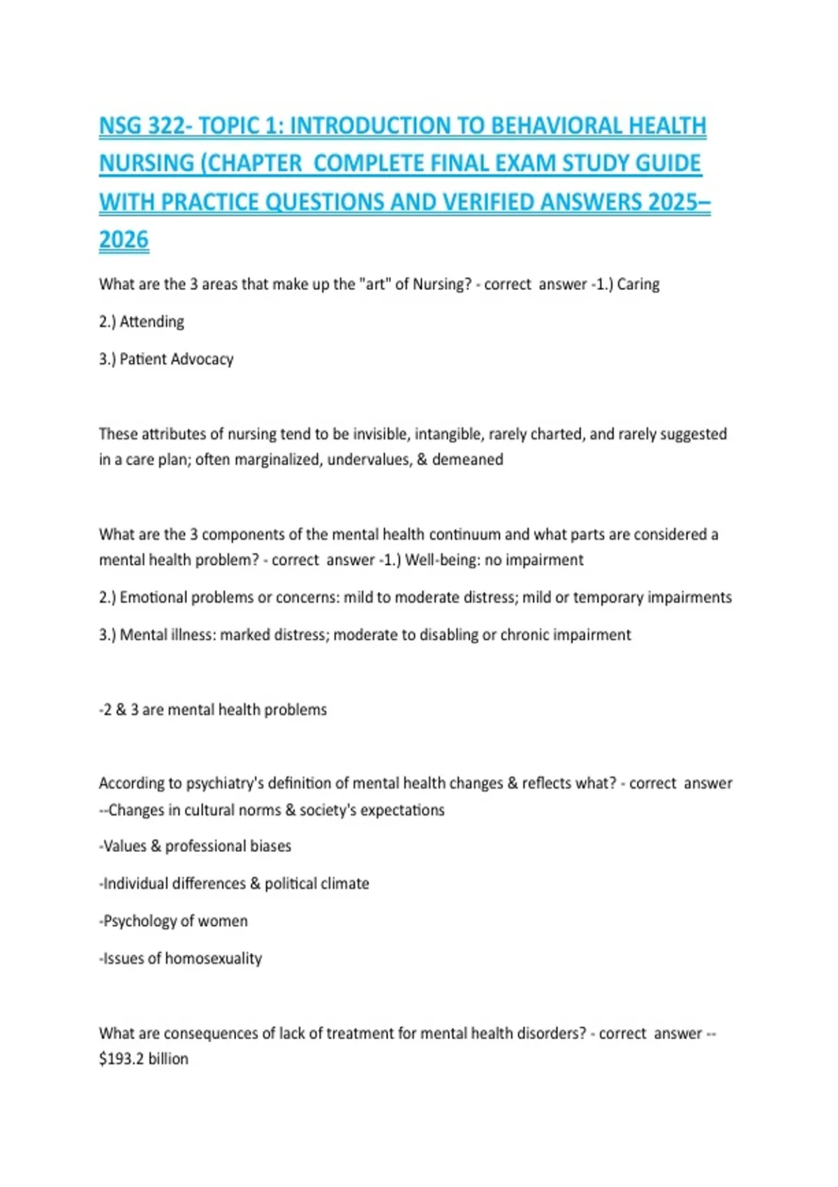 NSG 322- TOPIC 1: INTRODUCTION TO BEHAVIORAL HEALTH