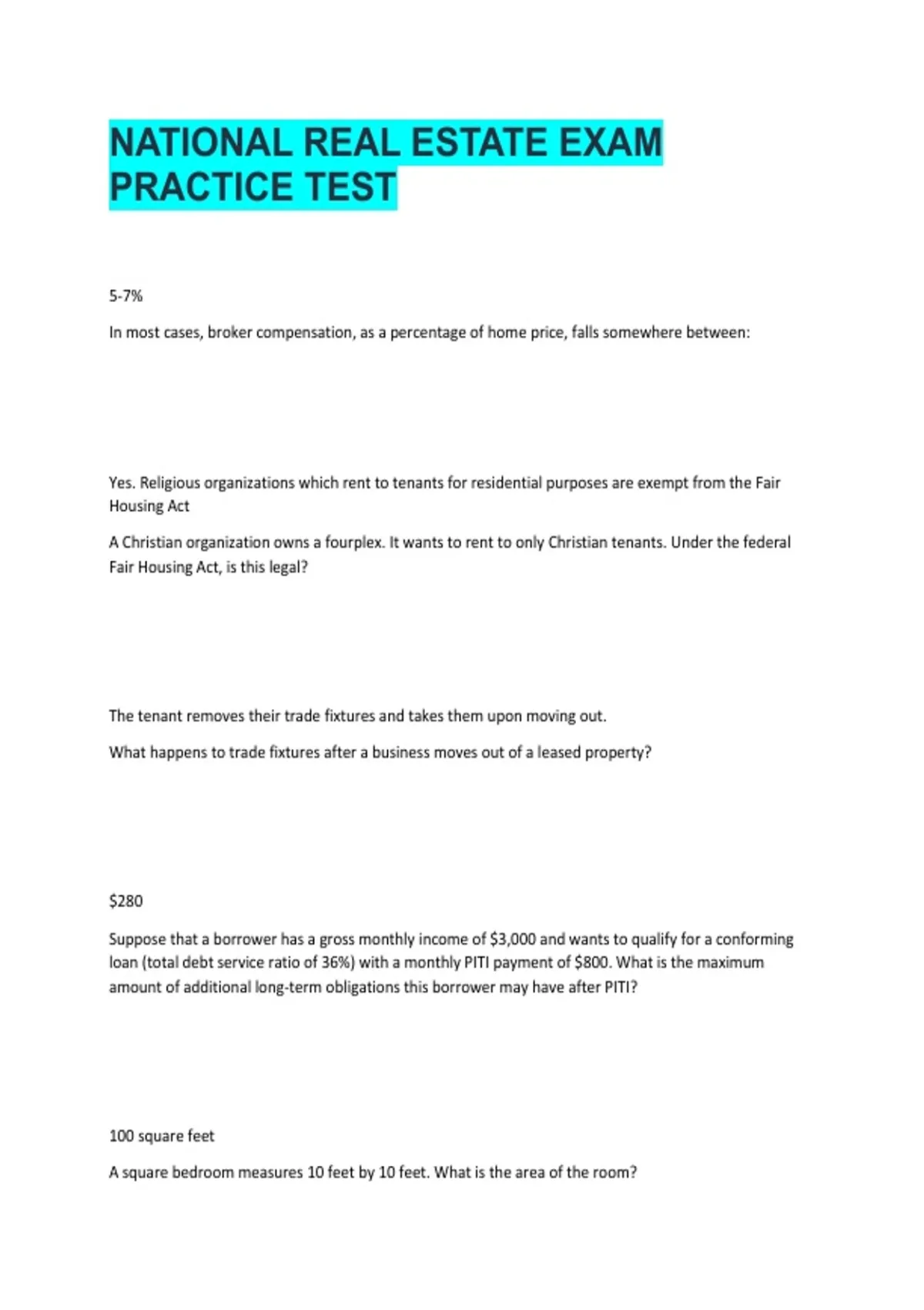 Page 1 NATIONAL REAL ESTATE EXAM PRACTICE TEST