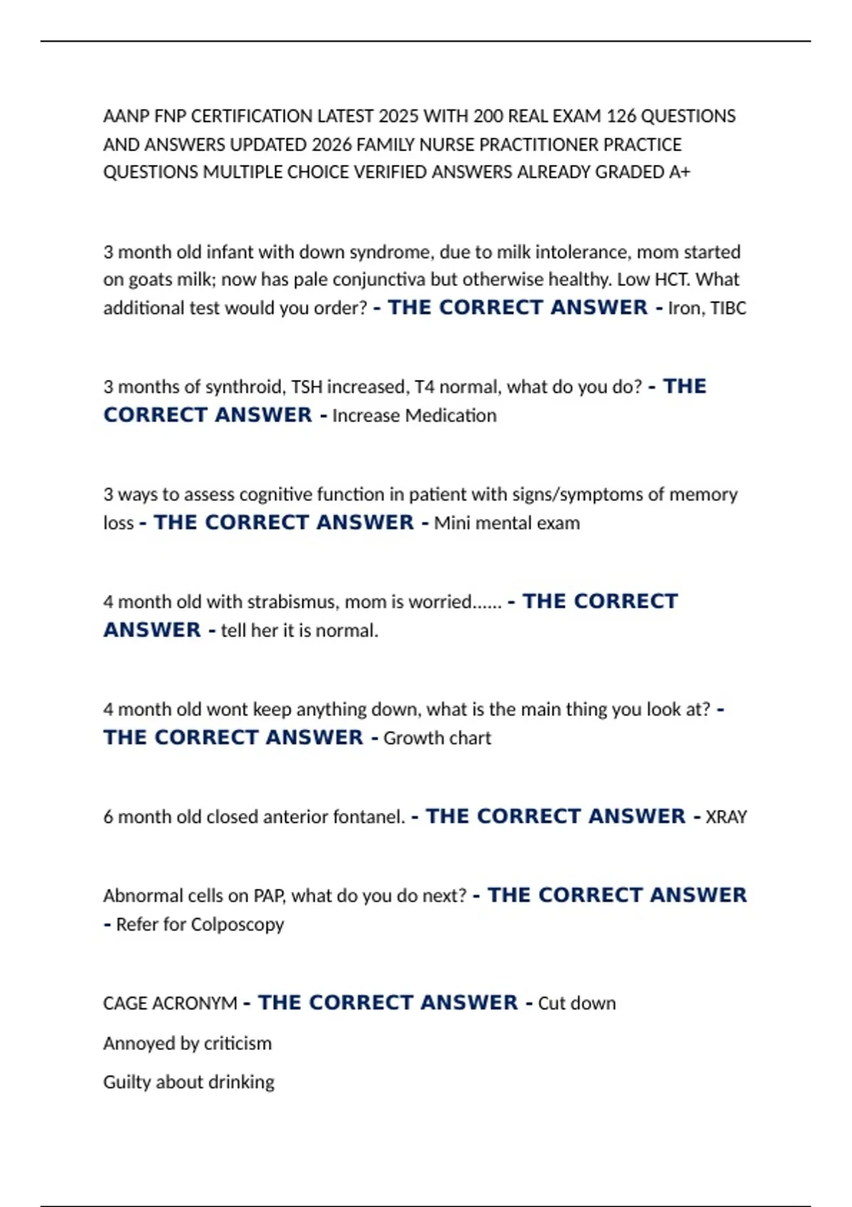 AND ANSWERS UPDATED 2026 FAMILY NURSE PRACTITIONER PRACTICE