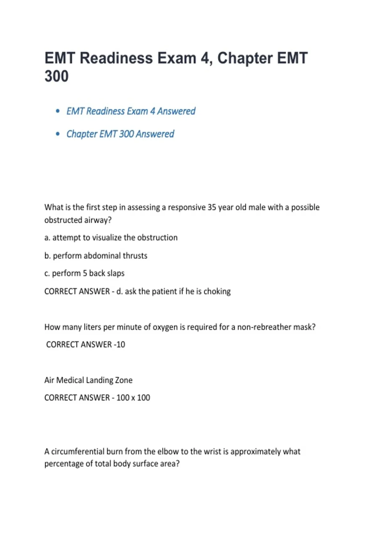 ,2026: 100% correct -3 EMT Readiness Exam 4, Chapter EMT 300 EMT Readiness Exam 4, Chapter EMT 300.pdf
