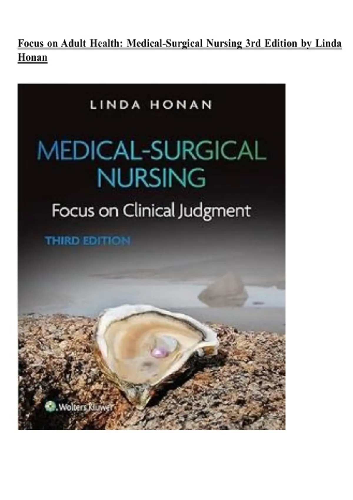 Test Bank for Focus on Adult Health: Medical-Surgical Nursing, 3rd Edition by Linda Honan – Complete and Updated Coverage. This test bank for Focus on Adult Health: Medical-Surgical Nursing, 3rd Edition by Linda Honan provides comprehensive, chapter-by-chapter questions covering adult patient assessment, medical-surgical conditions, clinical judgment, and evidence-informed nursing interventions. Aligned closely with the textbook structure, it supports effective review, exam preparation, and concept reinforcement with full coverage of all chapters.
