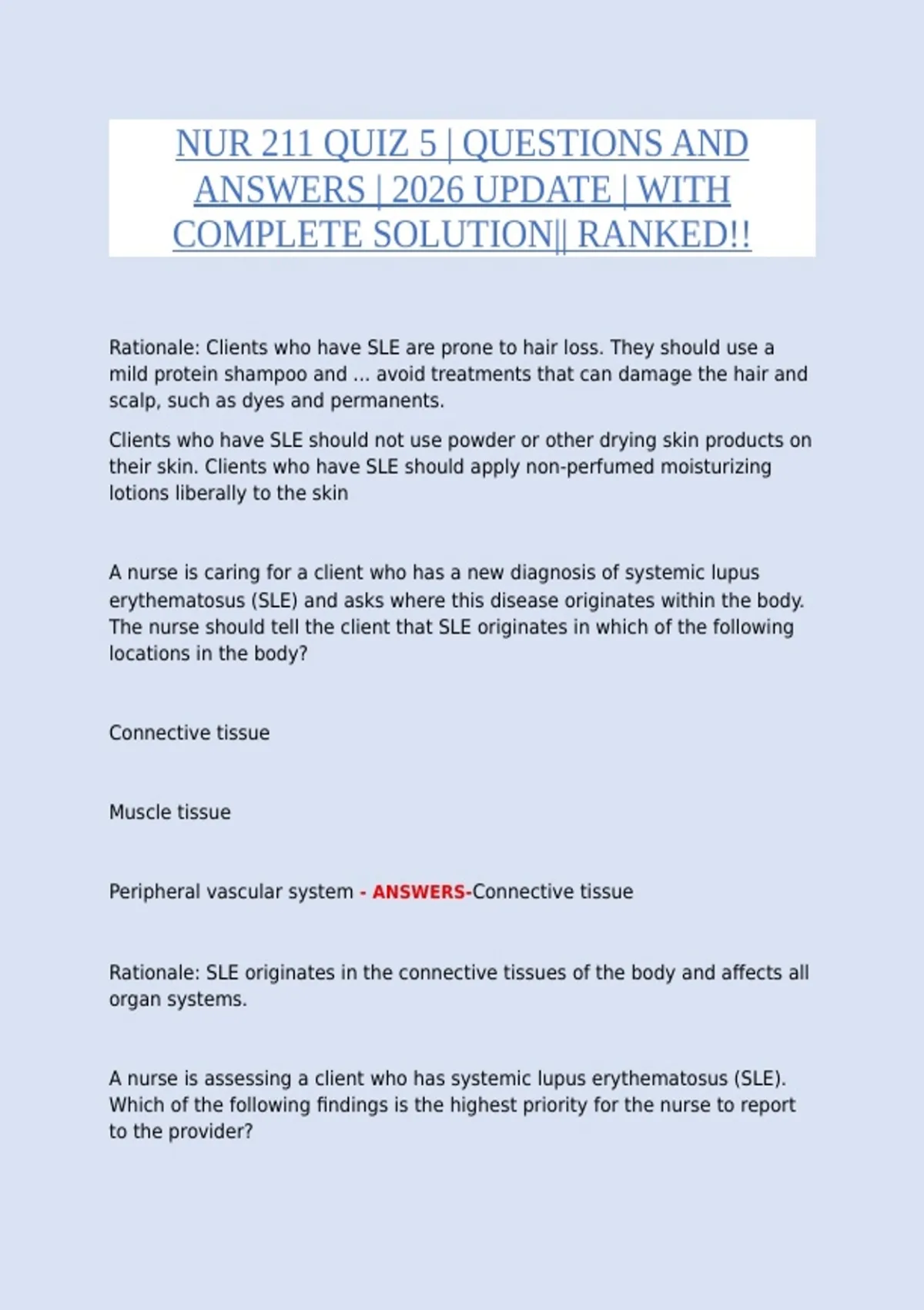 Rationale: SLE originates in the connective tissues of the body and affects all