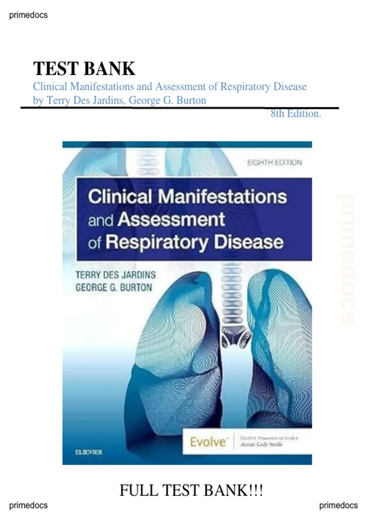 Test bank for Clinical manifestations and assessment of respiratory disease 8e — Exam prep edition Practice questions with verified answers | Full chapter coverage | Latest edition