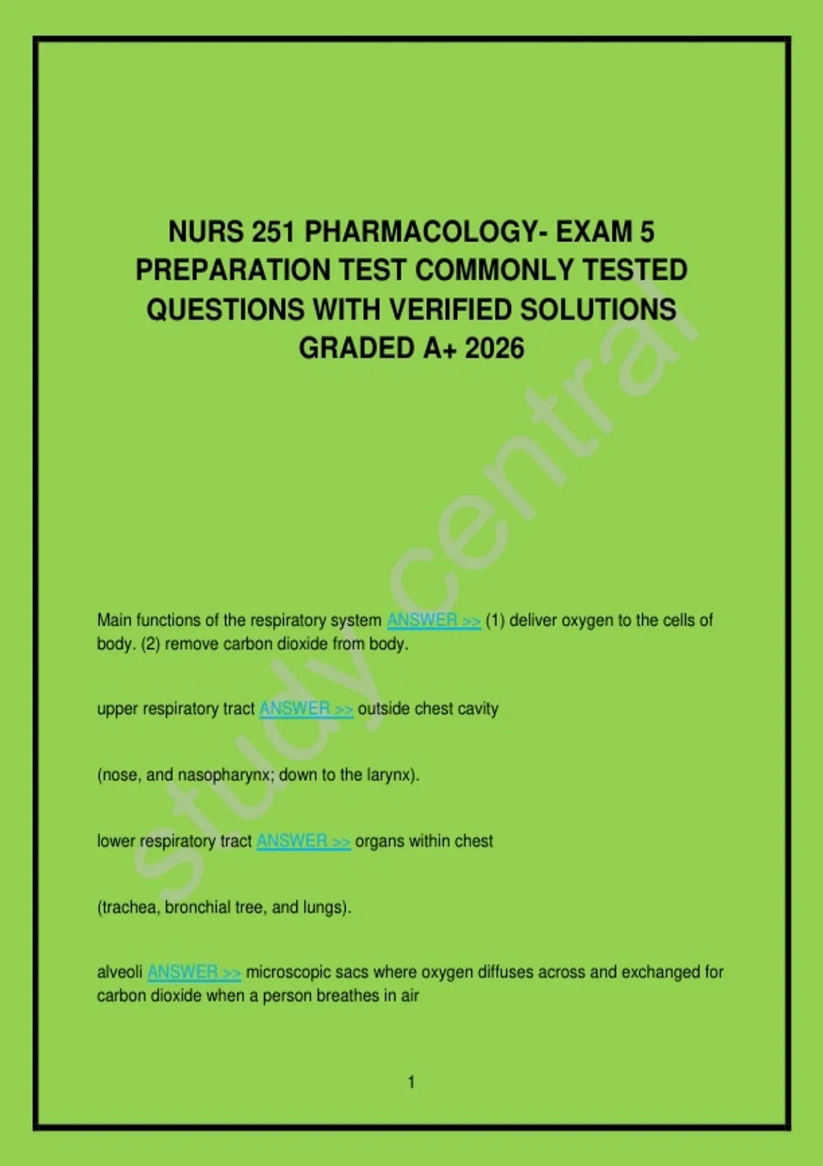 Main functions of the respiratory system ANSWER >> (1) deliver oxygen to the cells of