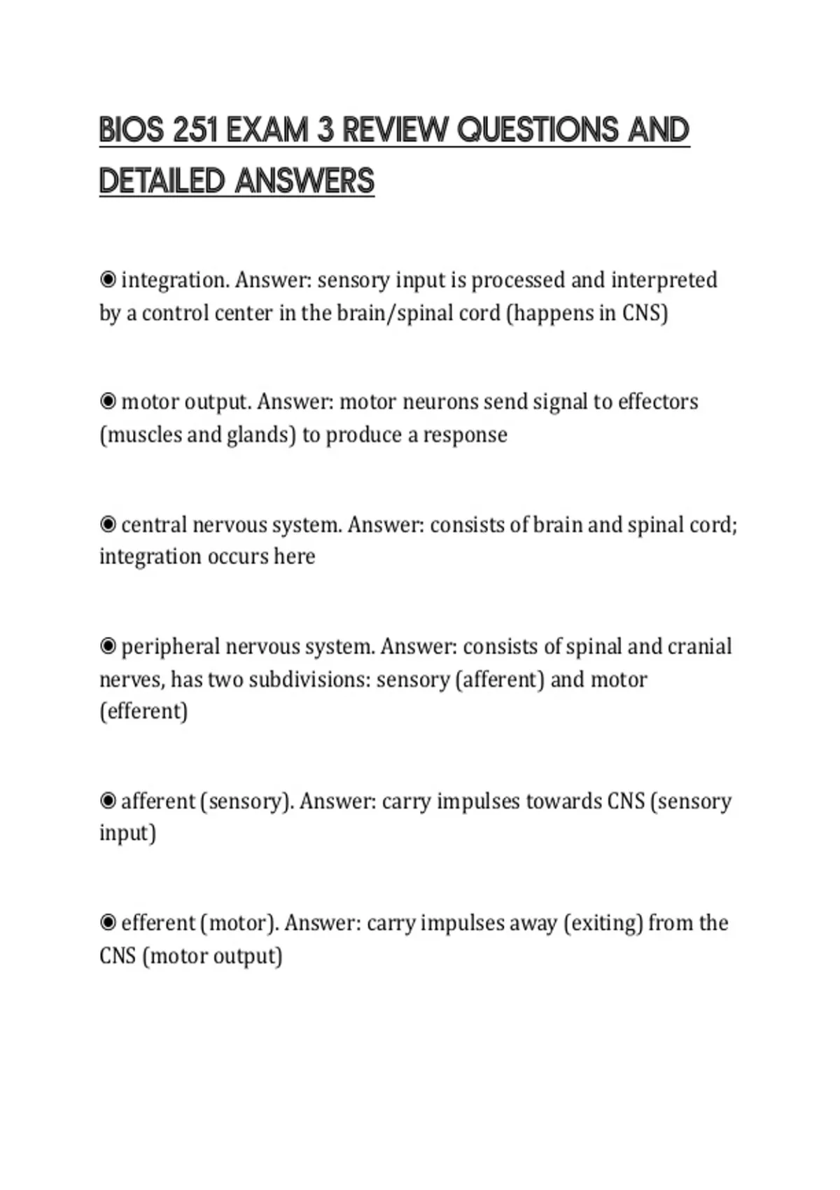 BIOS 251 EXAM 3 REVIEW QUESTIONS AND DETAILED ANSWERS