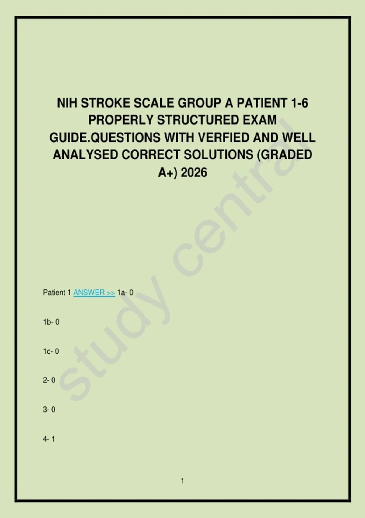 NIH Stroke Scale Group A Patients 1–6, 2026 – Properly Structured Exam Guide with Verified and Well-Analysed Correct Solutions (A+ Graded)