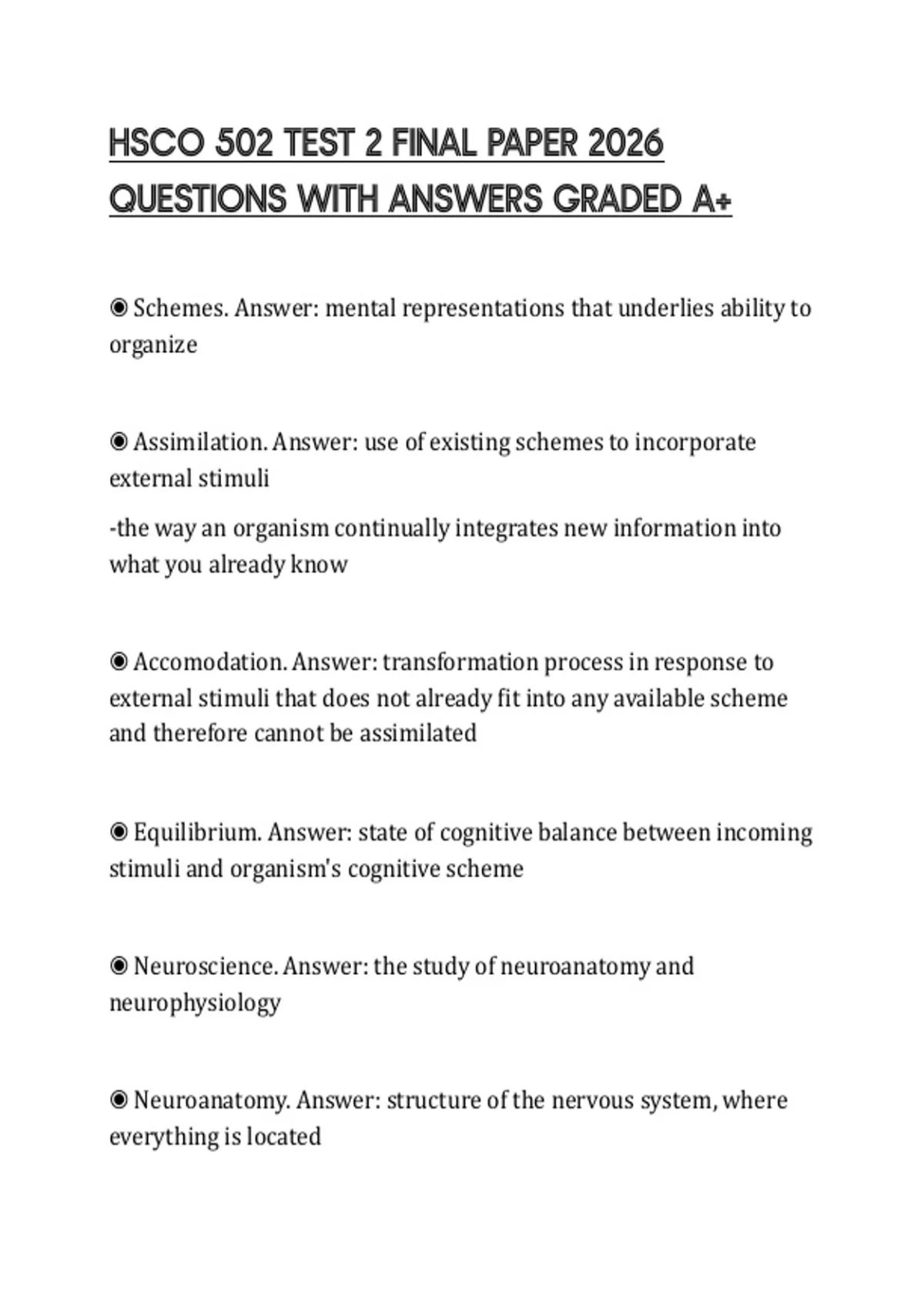 HSCO 502 TEST 2 FINAL PAPER 2026 QUESTIONS WITH ANSWERS GRADED A+