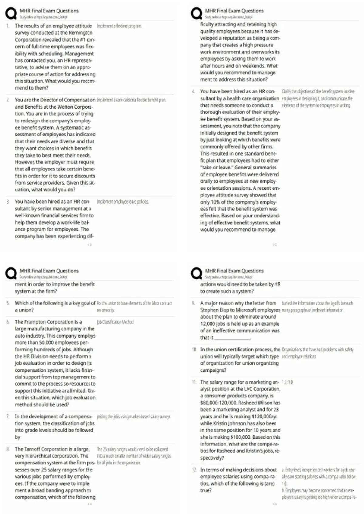 Prepare confidently for the MHR (Managing Human Resources) Final Exam with updated exam-style questions, answers, and key explanations. This study guide covers core HR concepts, theories, and real-world applications to help students score 100% in quizzes, finals, and assignments.