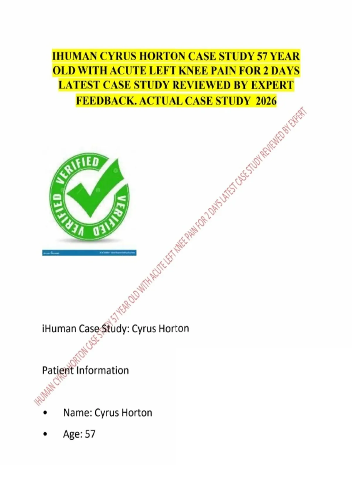IHUMAN CYRUS HORTON CASE STUDY 57 YEAR OLD WITH ACUTE LEFT KNEE PAIN FOR 2 DAYS LATEST CASE STUDY REVIEWED BY EXPERT.
