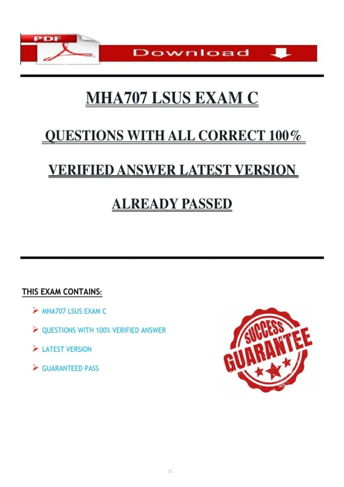 MHA707 LSUS EXAM C QUESTIONS WITH ALL CORRECT 100% VERIFIED ANSWERS LATEST VERSION ALREADY PASSED