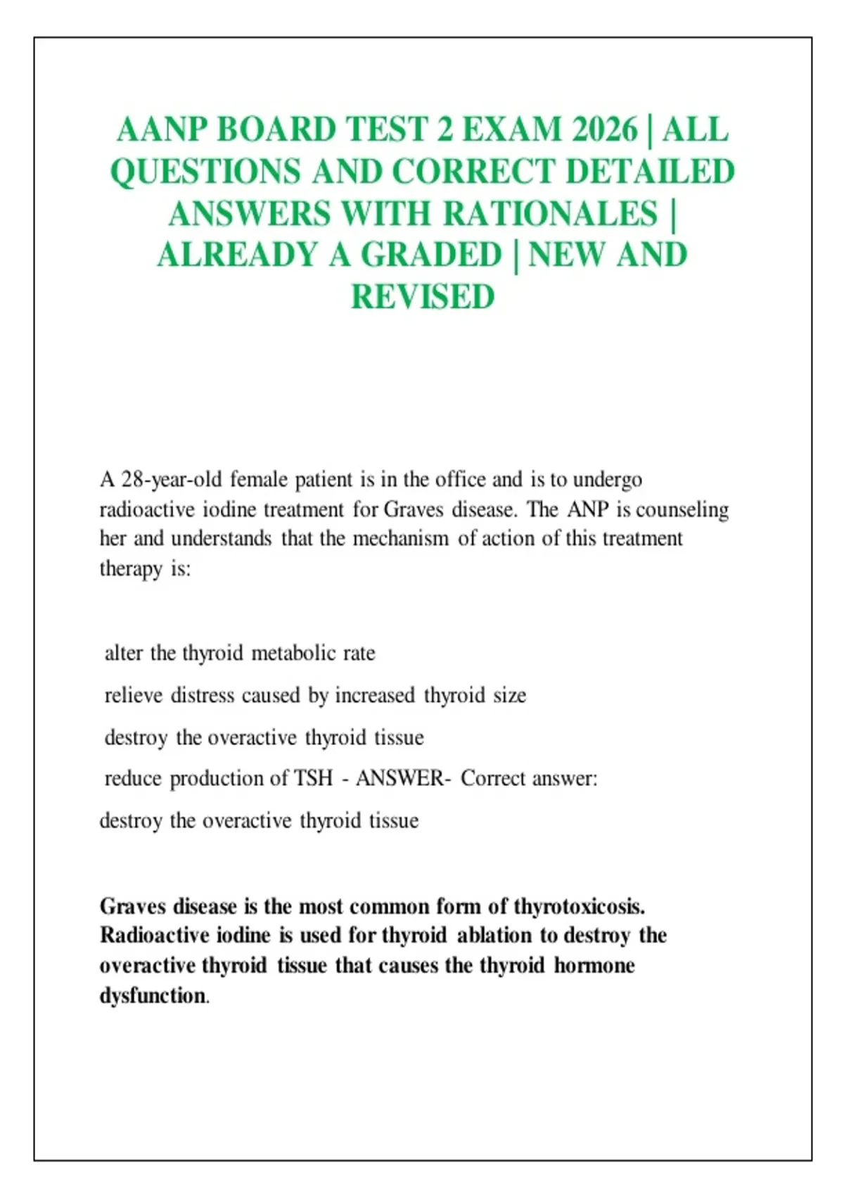 radioactive iodine treatment for Graves disease. The ANP is counseling