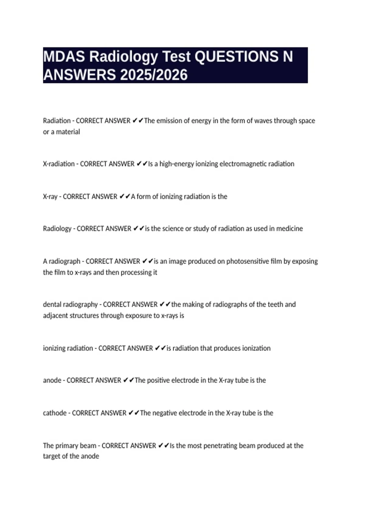 X-radiation - CORRECT ANSWER ✔✔Is a high-energy ionizing electromagnetic radiation
