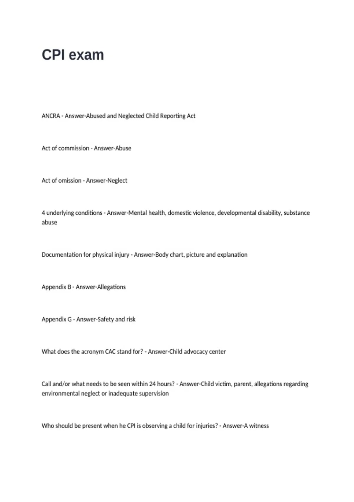 Who should be present when he CPI is observing a child for injuries? - Answer-A witness