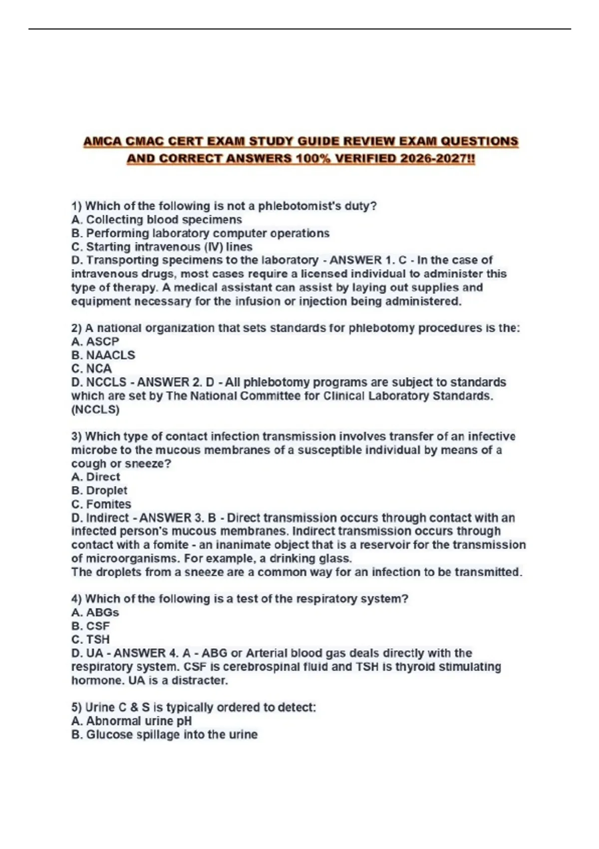 AMCA CMAC CERT EXAM STUDY GUIDE REVIEW QUESTIONS AND CORRECT ANSWERS 100% VERIFIED !!...