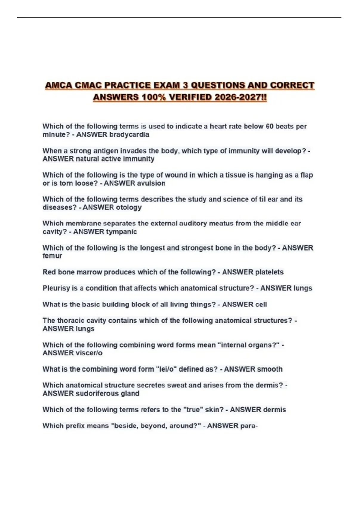 AMCA CMAC PRACTICE EXAM 3 QUESTIONS AND CORRECT ANSWERS 100% VERIFIED !!