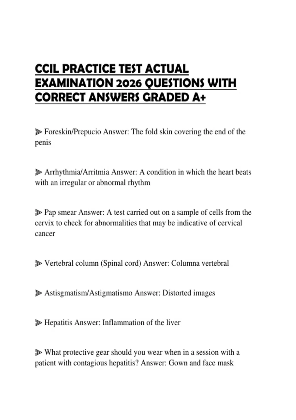 CCIL PRACTICE TEST ACTUAL EXAMINATION 2026 QUESTIONS WITH CORRECT ANSWERS GRADED A+