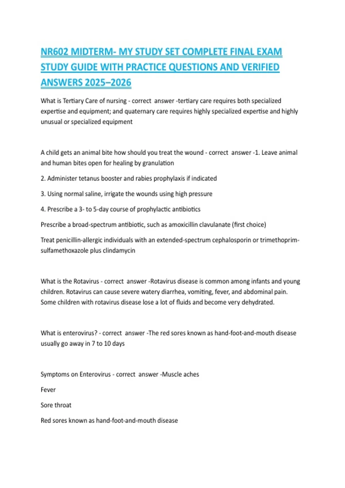 NR602 MIDTERM- MY STUDY SET COMPLETE FINAL EXAM STUDY GUIDE WITH PRACTICE QUESTIONS AND VERIFIED ANSWERS 2025–2026