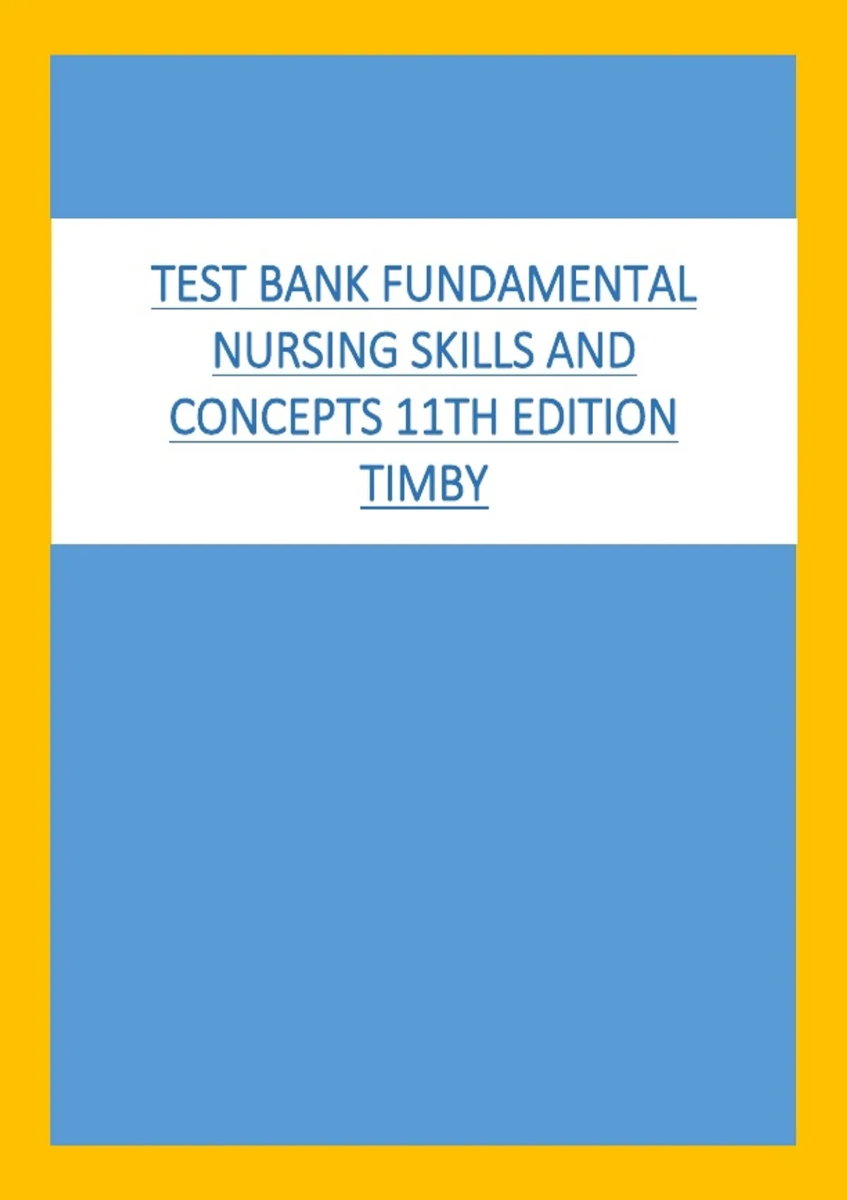 This document contains a complete test bank for Fundamental Nursing Skills and Concepts (11th Edition), covering core nursing principles, clinical skills, safety, hygiene, patient care, and foundational concepts. It is ideal for exam preparation, practice questions, and reinforcing theoretical and practical nursing knowledge.