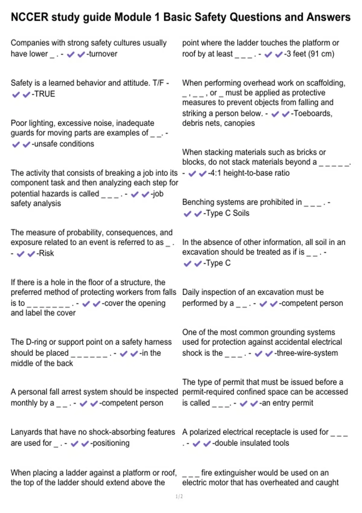 NCCER study guide Module 1 Basic Safety Questions and Answers