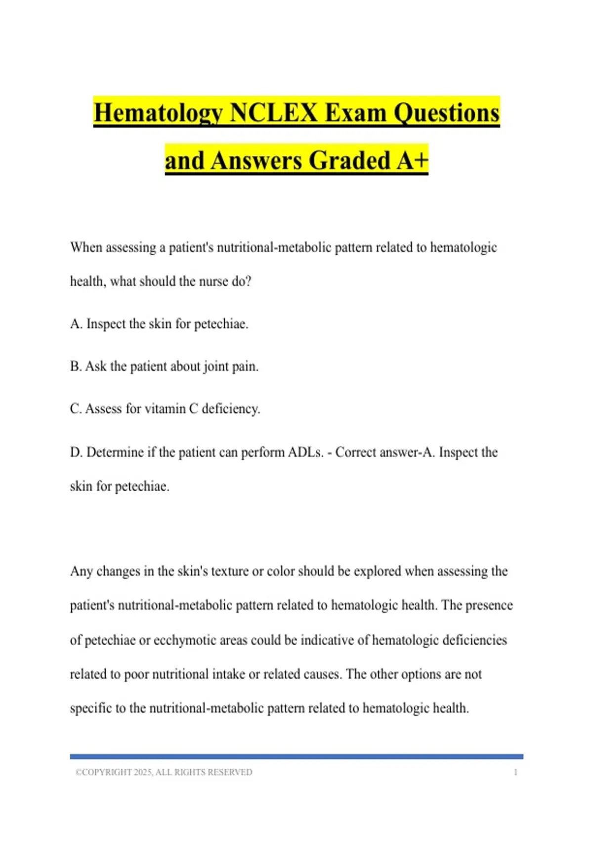 Hematology NCLEX Exam Questions and Answers Graded A+