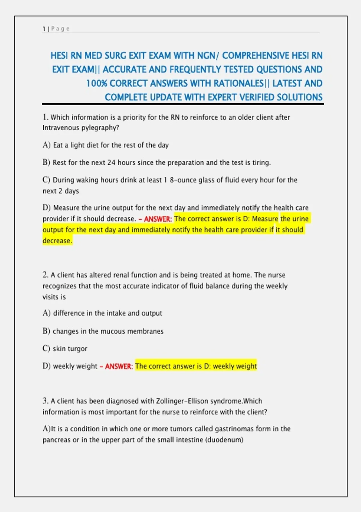 The HESI RN Med-Surg Exit Exam NGN and Comprehensive HESI RN Exit Exam resource delivers accurate, exam-style questions with verified answers and detailed rationales. Reflecting Next Generation NCLEX principles, it strengthens clinical judgment, patient prioritization, and medical-surgical nursing knowledge to ensure focused preparation and confident performance on HESI RN exit examinations.