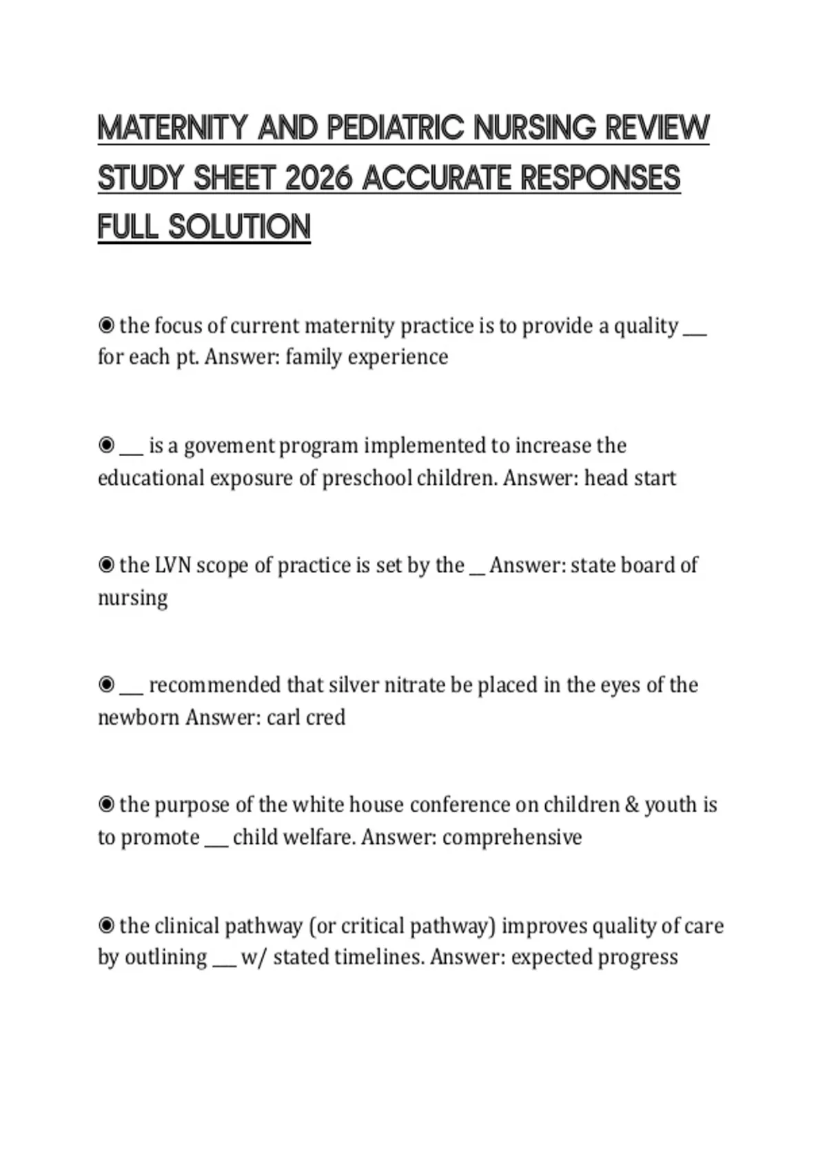 STUDY SHEET 2026 ACCURATE RESPONSES