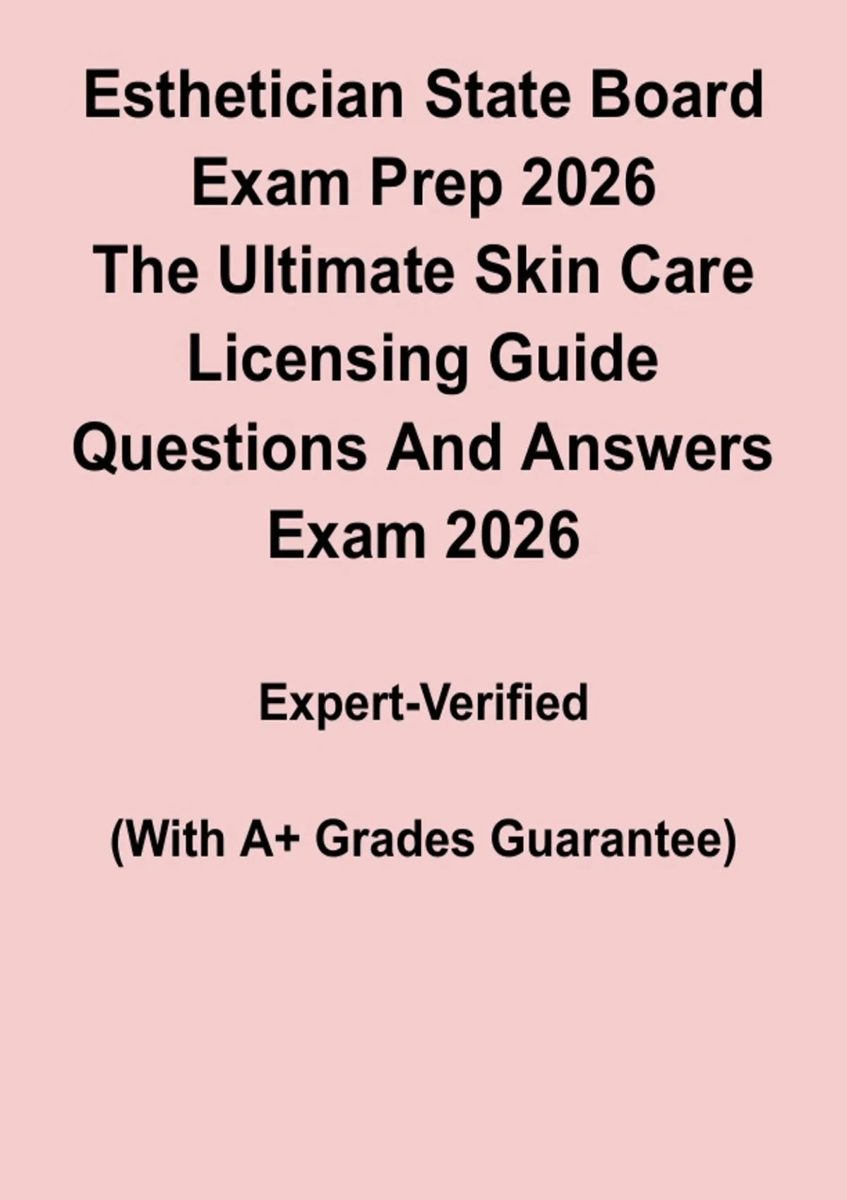 This Esthetician State Board Exam Prep 2026 PDF is the ultimate skin care study guide for candidates preparing for state board licensing exams. It covers all core exam topics, including skin analysis, facial treatments, hair removal, advanced skin care techniques, sanitation and safety, equipment usage, and state-specific regulations. With practice questions and clear explanations, this guide is perfect for self-assessment, structured study, and final exam preparation, helping candidates confidently pass the esthetician state board exam in 2026.