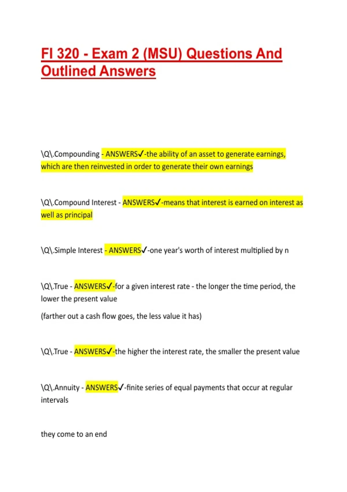\Q\.Annuity - ANSWERS✔-finite series of equal payments that occur at regular