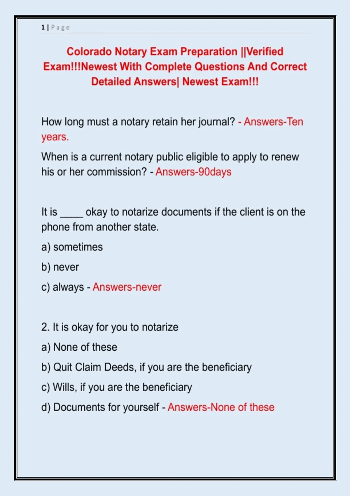 Colorado Notary Exam Preparation ||Verified