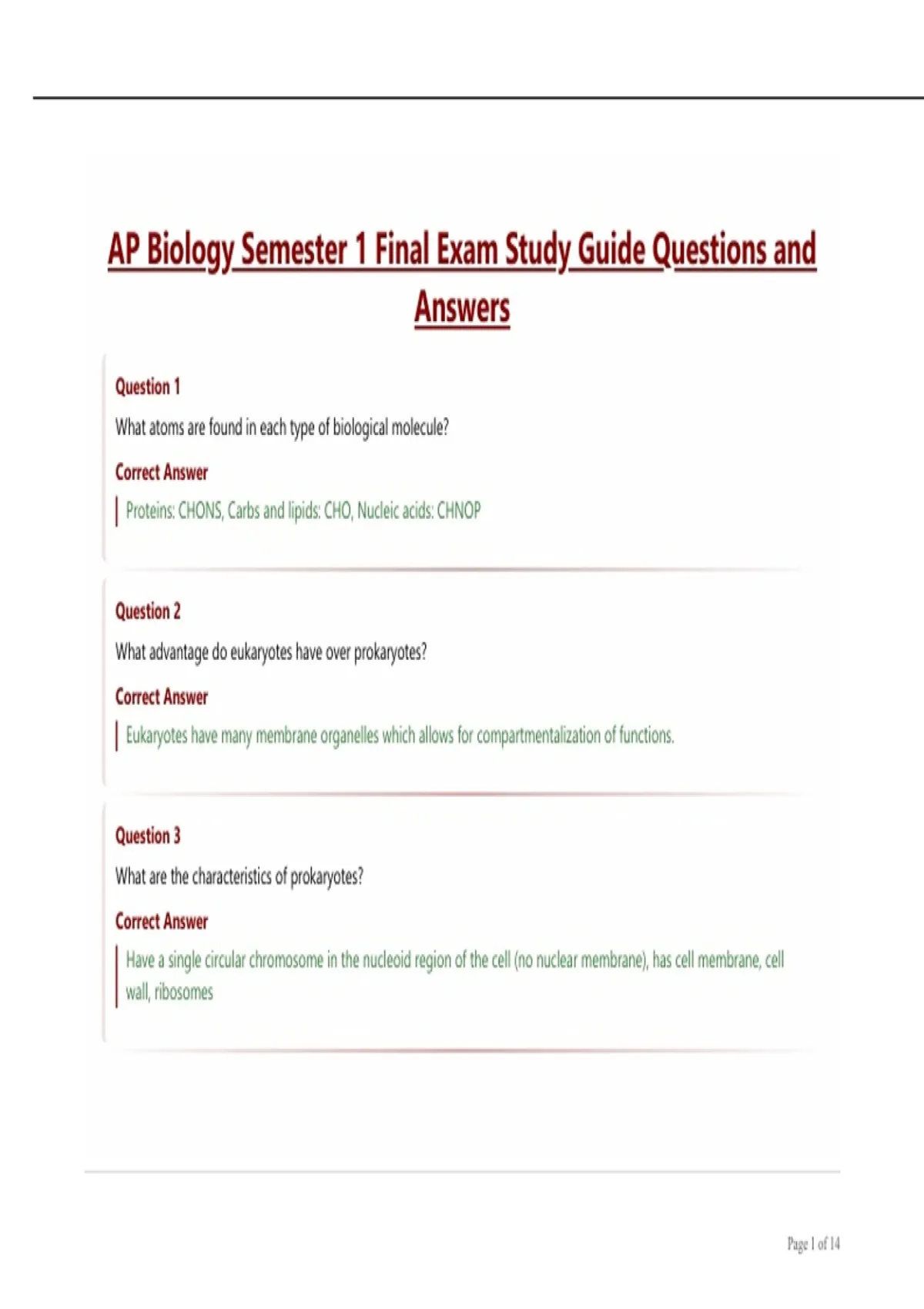 AP Biology Semester 1 Final Exam Study Guide Questions and Answers.