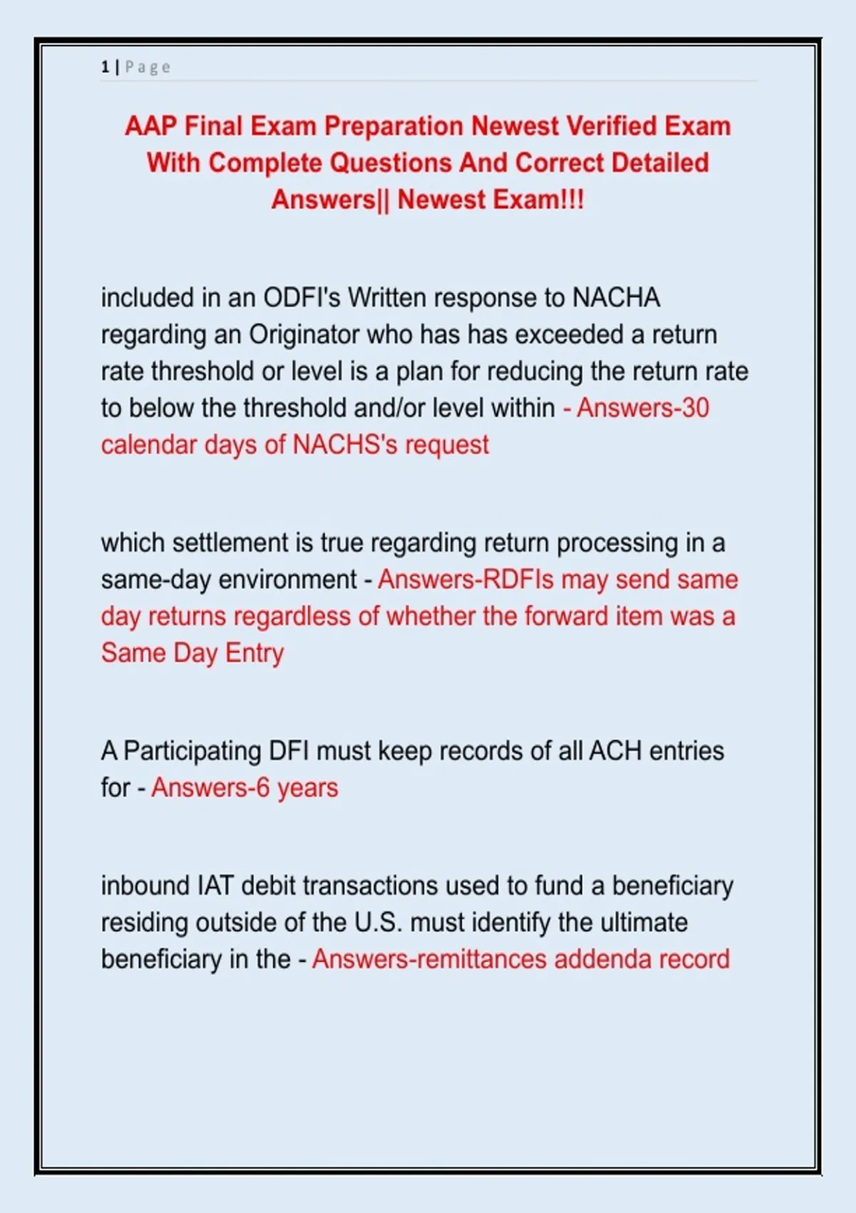 AAP Final Exam Preparation Newest Verified Exam With Complete Questions And Correct Detailed Answers|| Newest Exam!!!