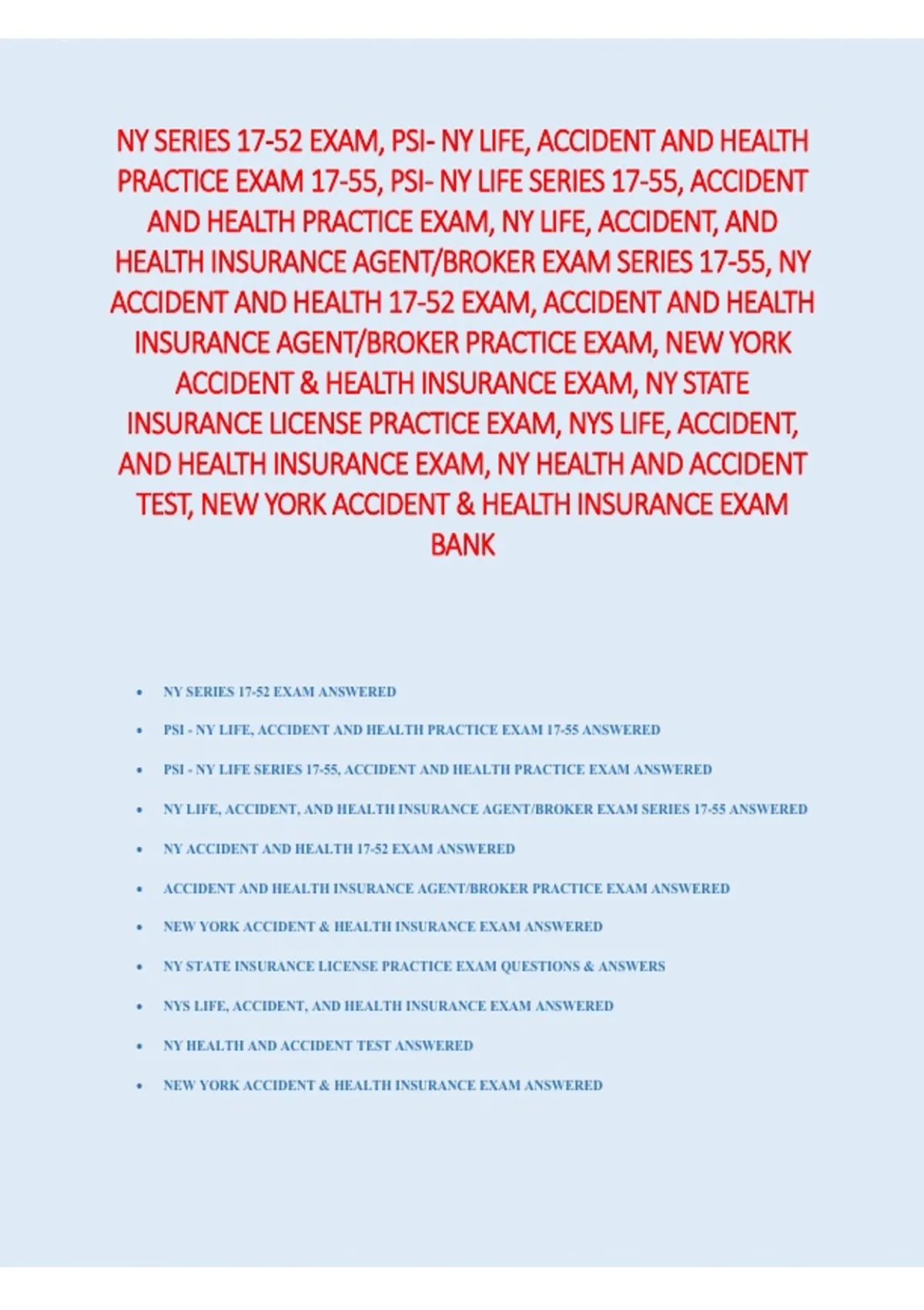 • PSI - NY LIFE SERIES 17-55, ACCIDENT AND HEALTH PRACTICE EXAM ANSWERED