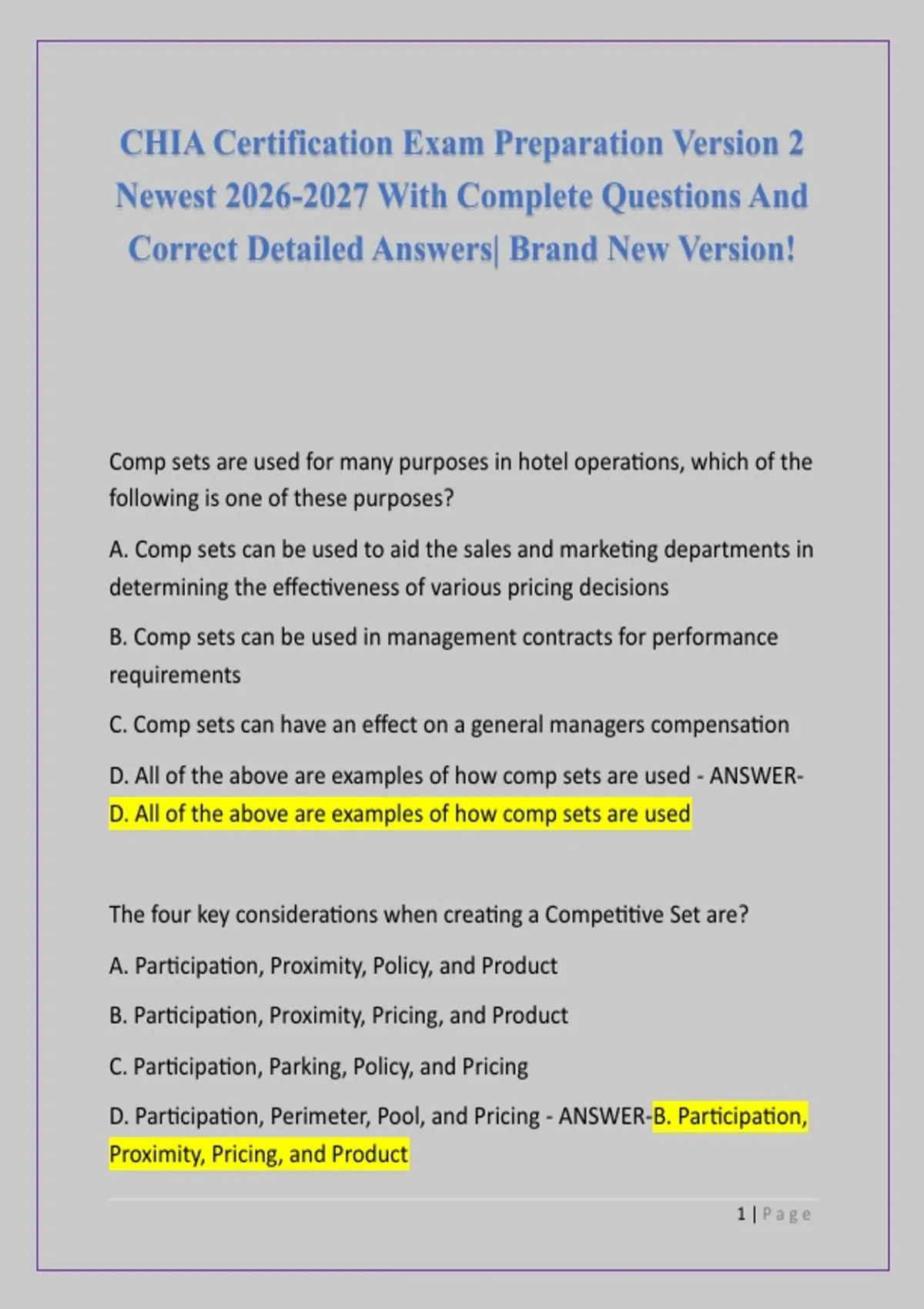 CHIA Certification Exam Preparation Version 2 Newest With Complete Questions And Correct Detailed Answers| Brand New Version!