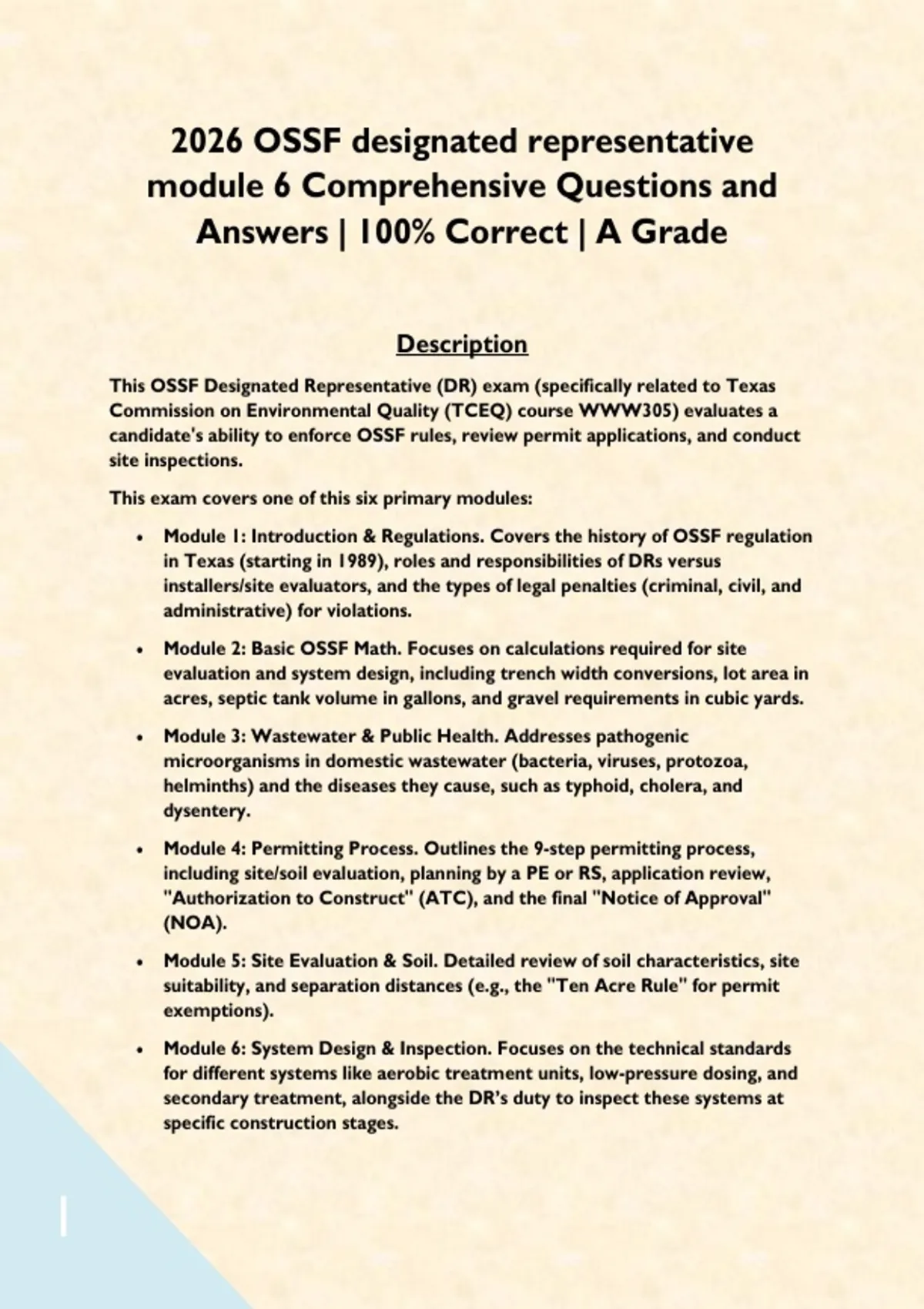 • Module 1: Introduction & Regulations. Covers the history of OSSF regulation
