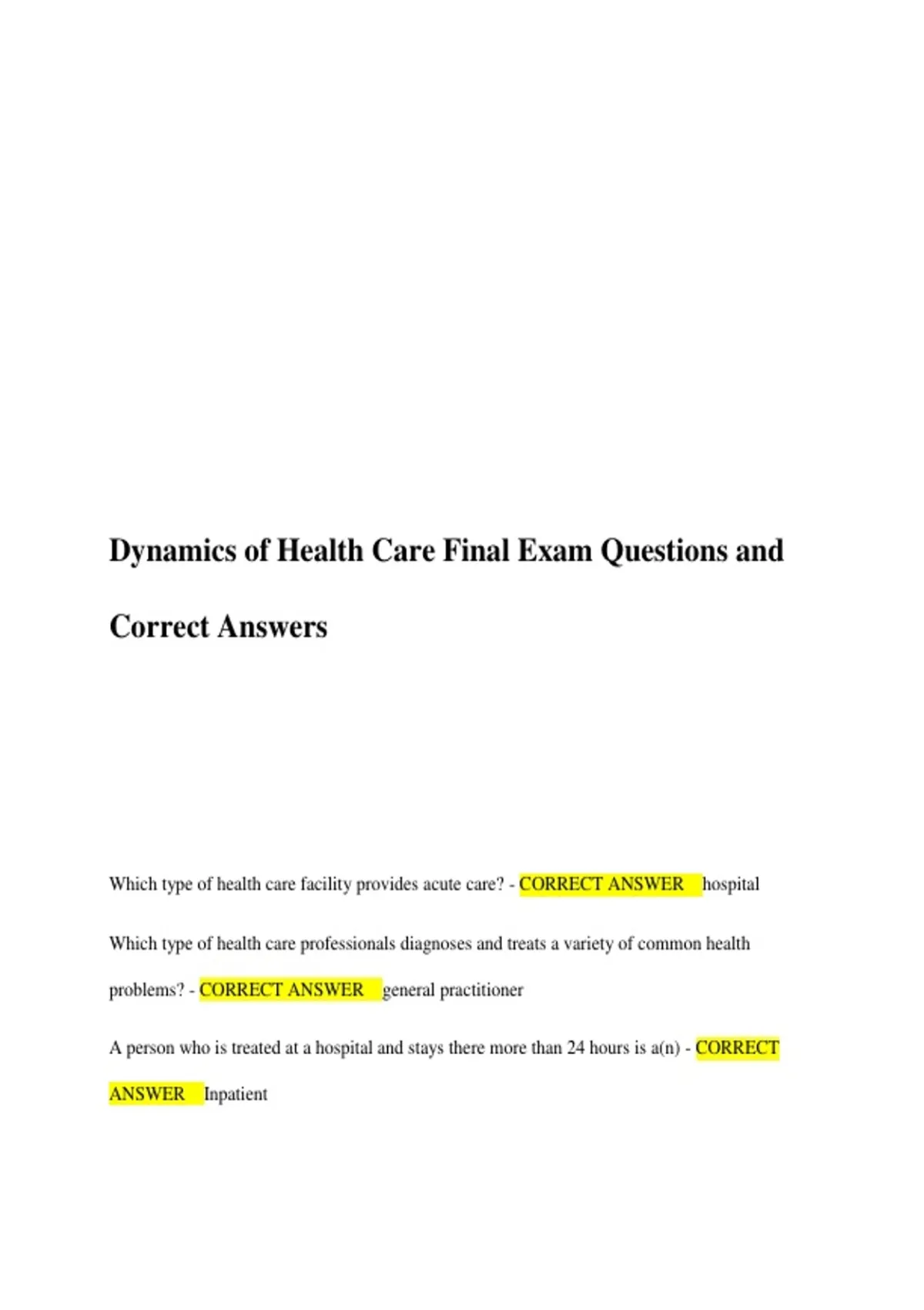 Which type of health care facility provides acute care? - CORRECT ANSWER hospital