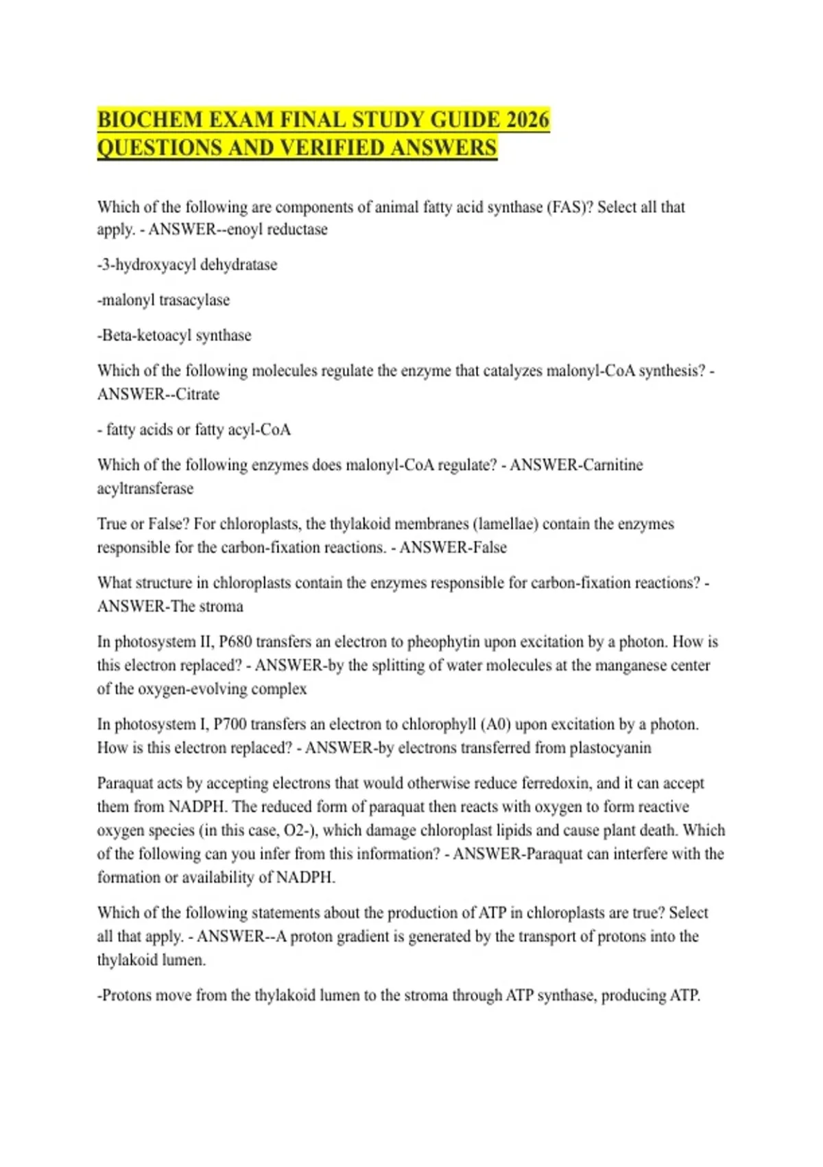 BIOCHEM EXAM FINAL STUDY GUIDE 2026