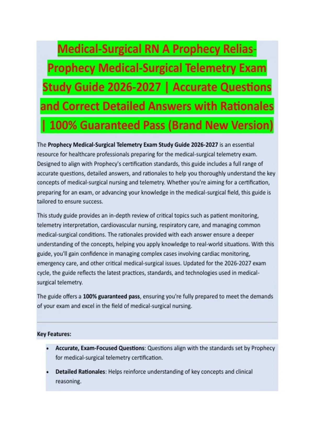 The Prophecy Medical-Surgical Telemetry Exam Study Guide 2026-2027 is an essential
