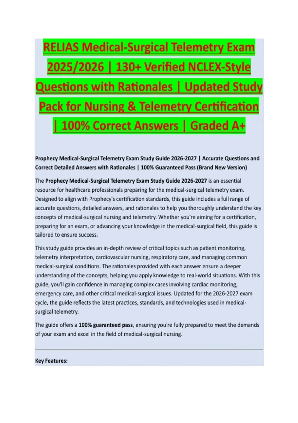 The Prophecy Medical-Surgical Telemetry Exam Study Guide 2026-2027 is an essential